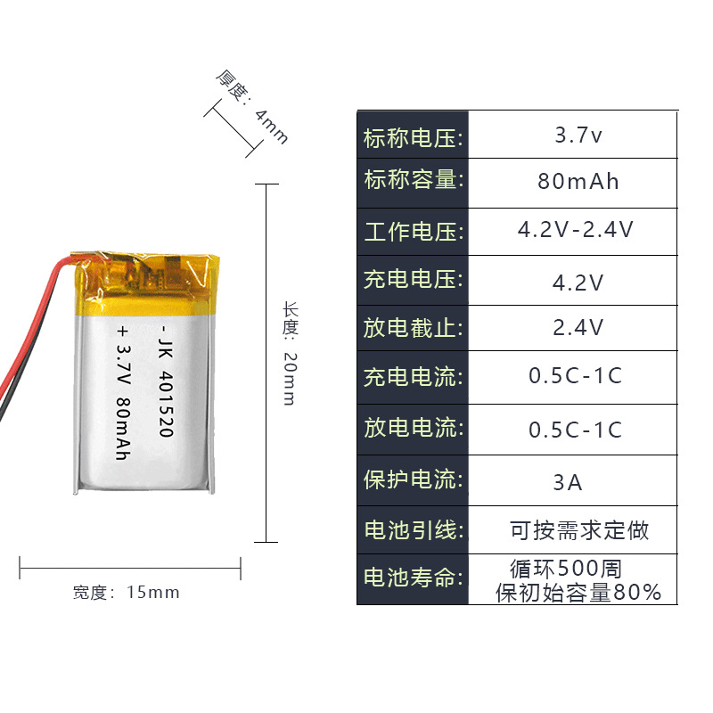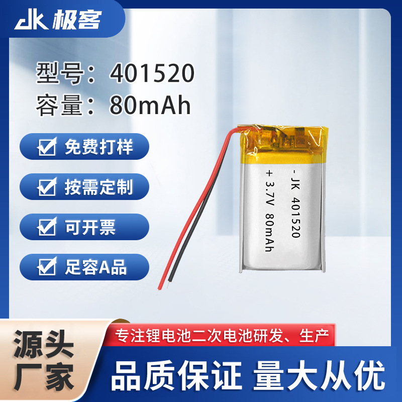 401520 폴리머 리튬 배터리 80mAh 가습기 장난감 블루투스 핸들 모기 킬러 뷰티 악기 3.7V스토어 가기