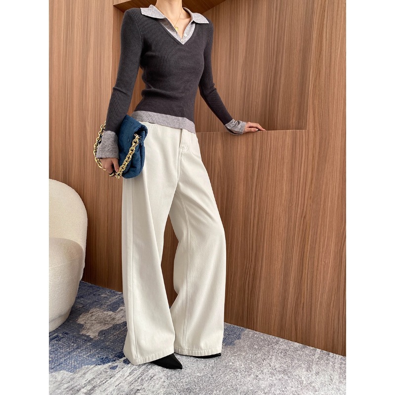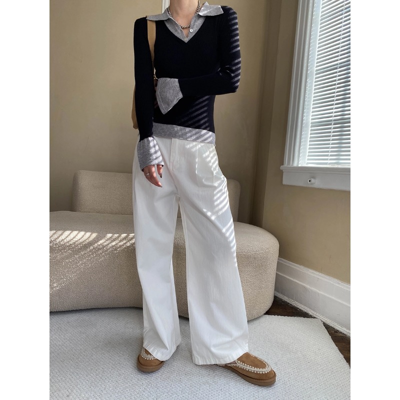 신안의 초가을 신상 배색 디자인 페이크 투피스 폴로 라펠 슬림핏 니트 스웨터 SN6907