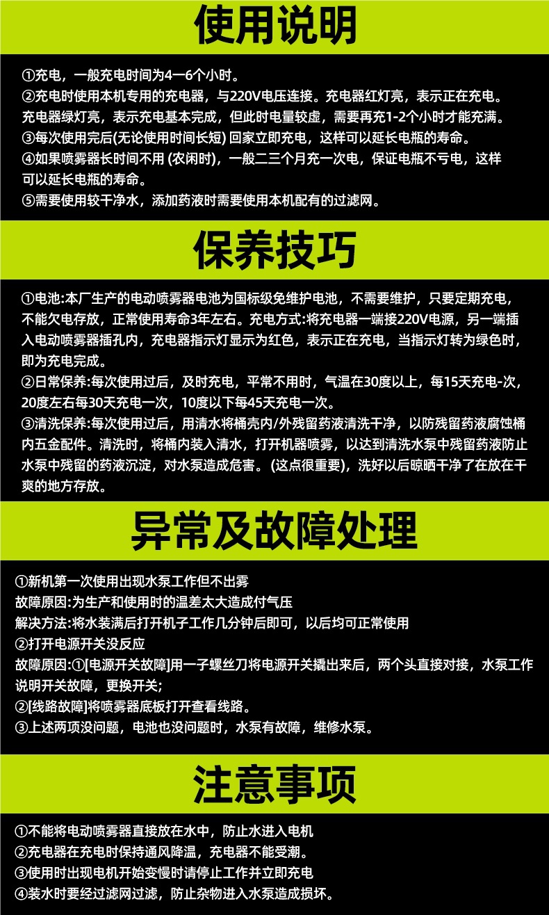 • [전기 교반] 20L 4스위치 45D 리튬 배터리 고전압(노즐 선물 패키지 포함)