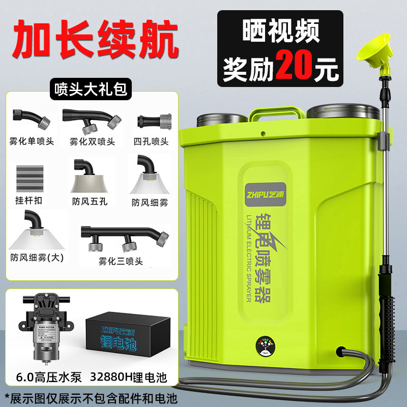 • 20리터 본체 속도 조절 이중 스위치 32880H 리튬 배터리 고전압(노즐 선물 패키지 포함)