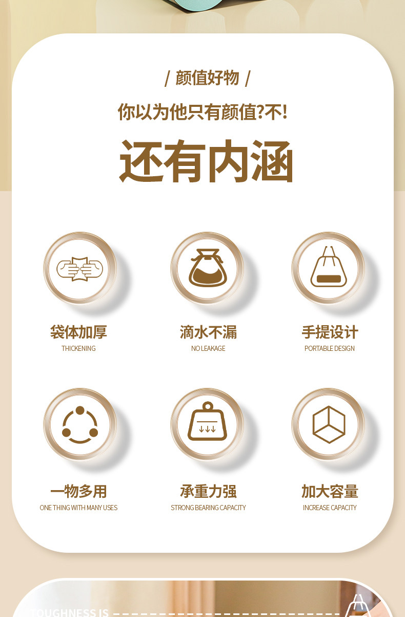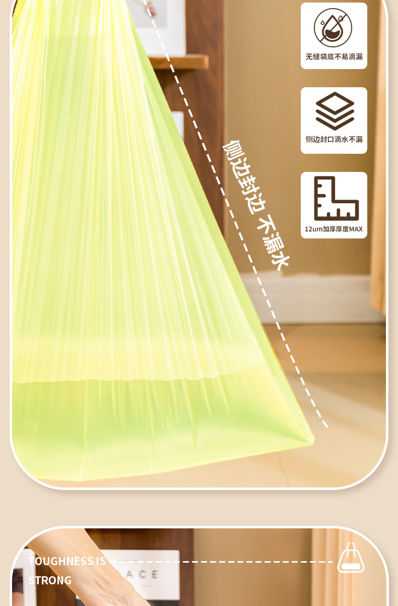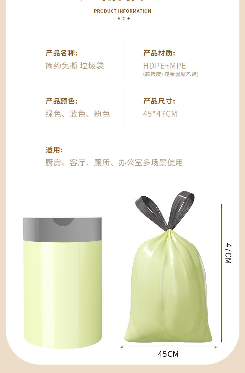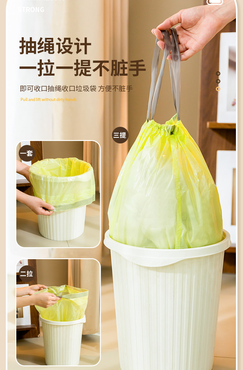 서랍 쓰레기 봉투 가정용 두꺼운 대형 휴대용 눈물없는 주방 청소 가방 사무실 비닐 봉투 가정용 팩