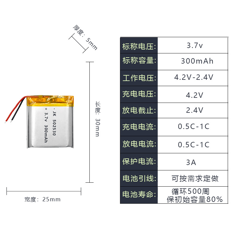 502530 폴리머 리튬 배터리 300mAh3.7V 미용 기기 수화 기기 블루투스 스피커 충전식 전기스토어 가기