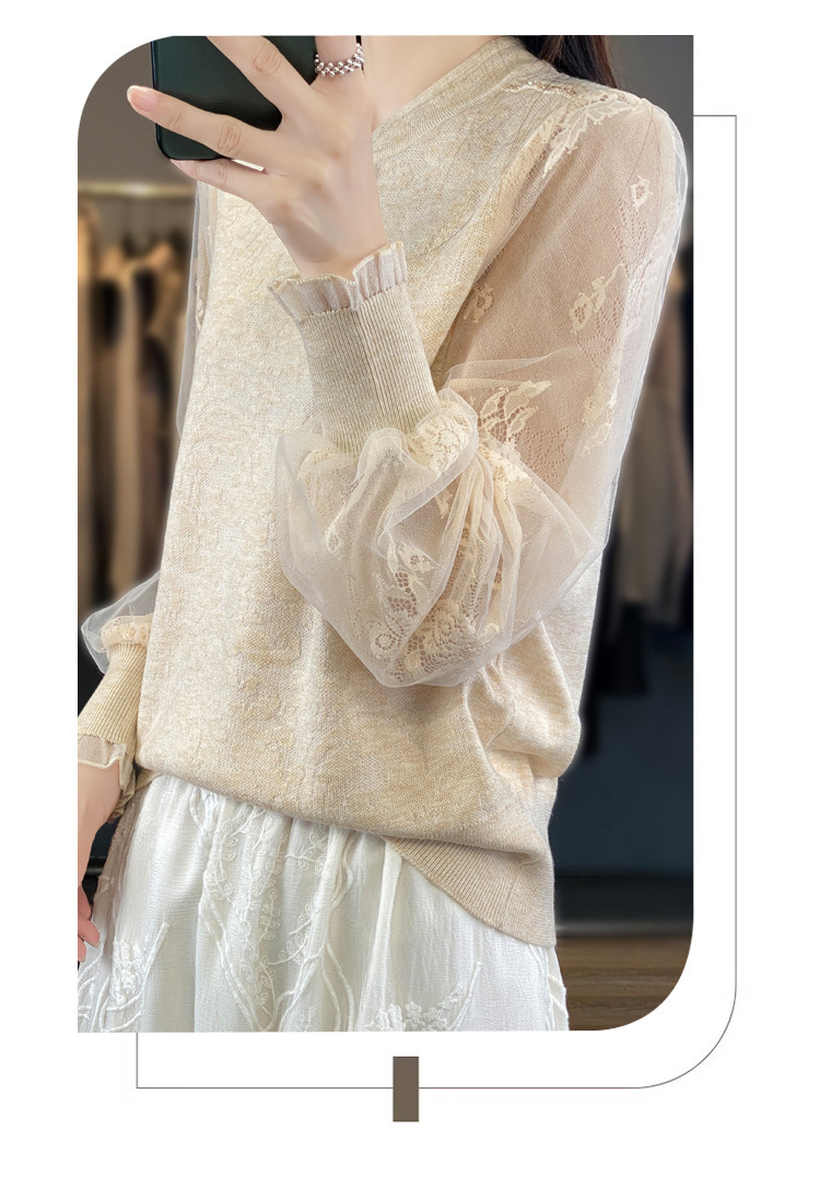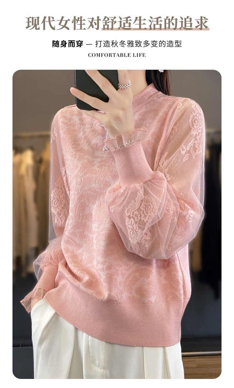 2024 봄과 가을 우아한 우아한 중국 여성의 Worsted 양모베이스 니트 셔츠 세련된 탑 수직 칼라 스웨터스토어 가기