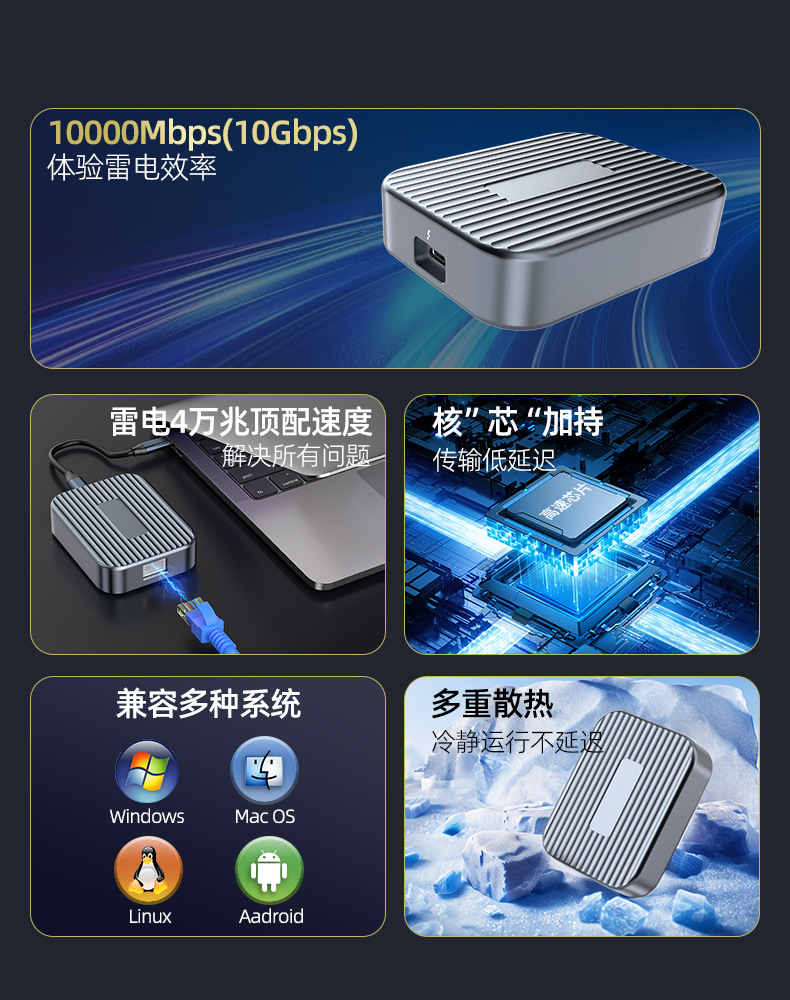 Thunderpower 4 ~ 10 기가비트 네트워크 인터페이스 변환기 40Gbps TYPE-C 도킹 스테이션 10Gbps스토어 가기