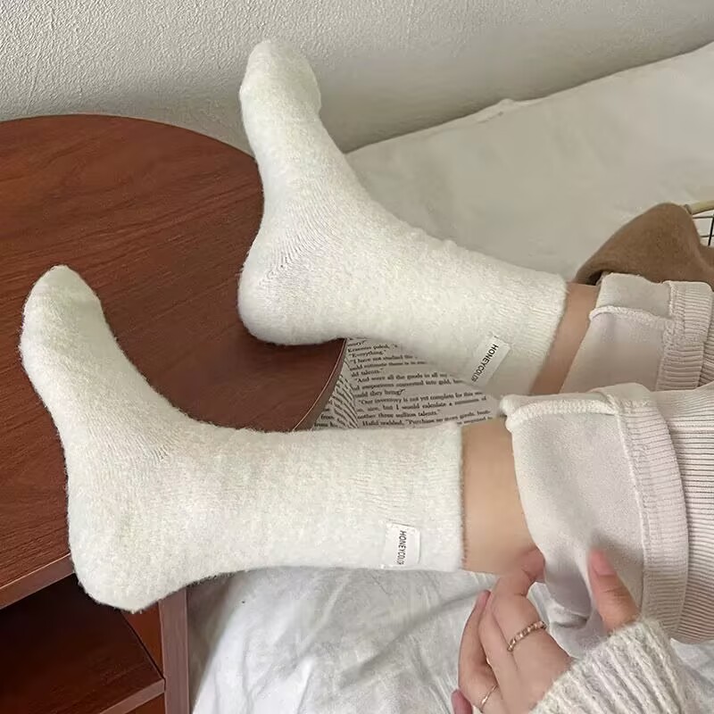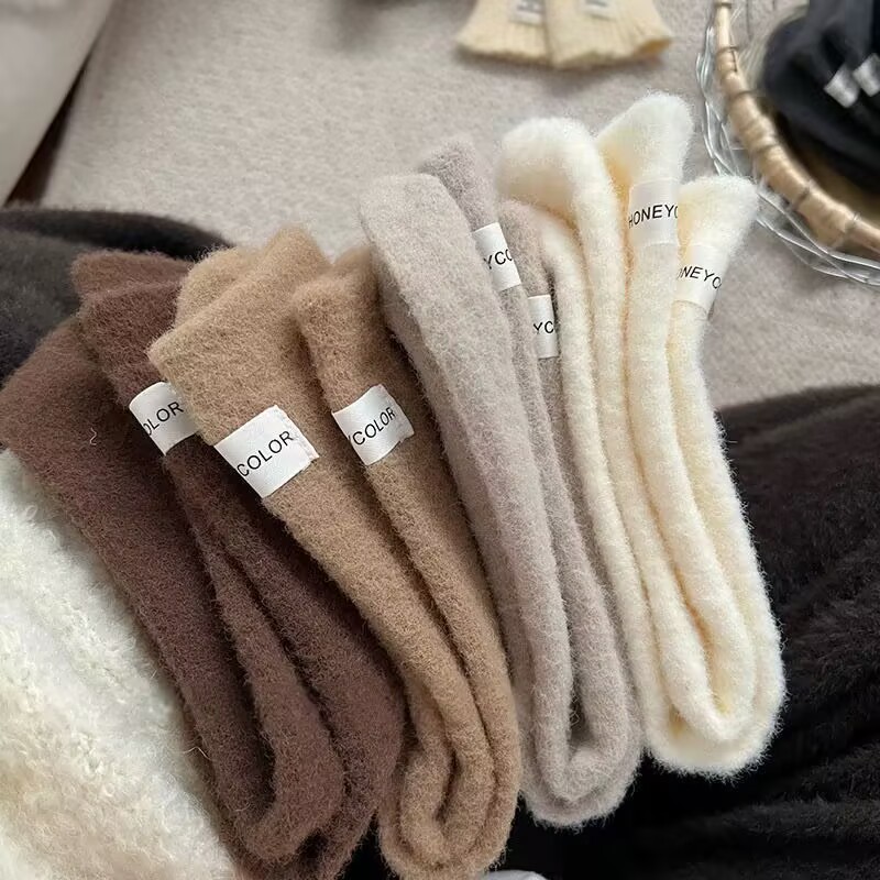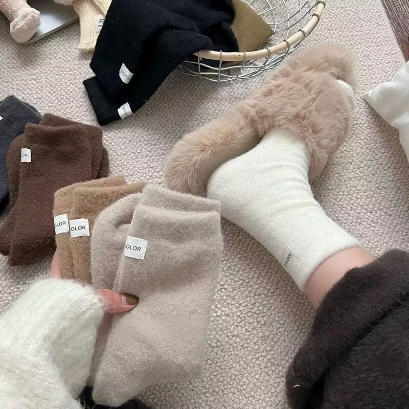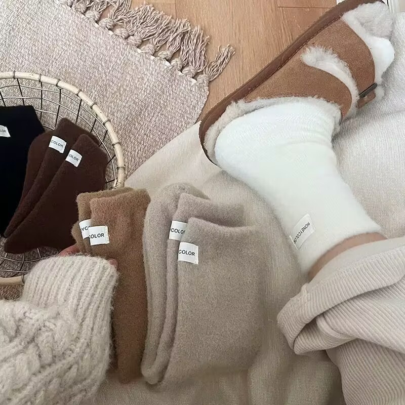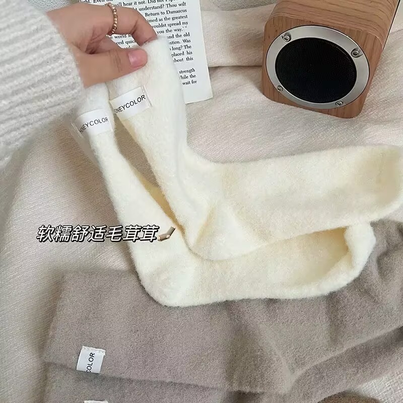가을과 겨울 Maillard 벨벳 양말 단색 천 라벨 두꺼운 튜브 양말 모피 여성 양말 기모 감금 양말스토어 가기