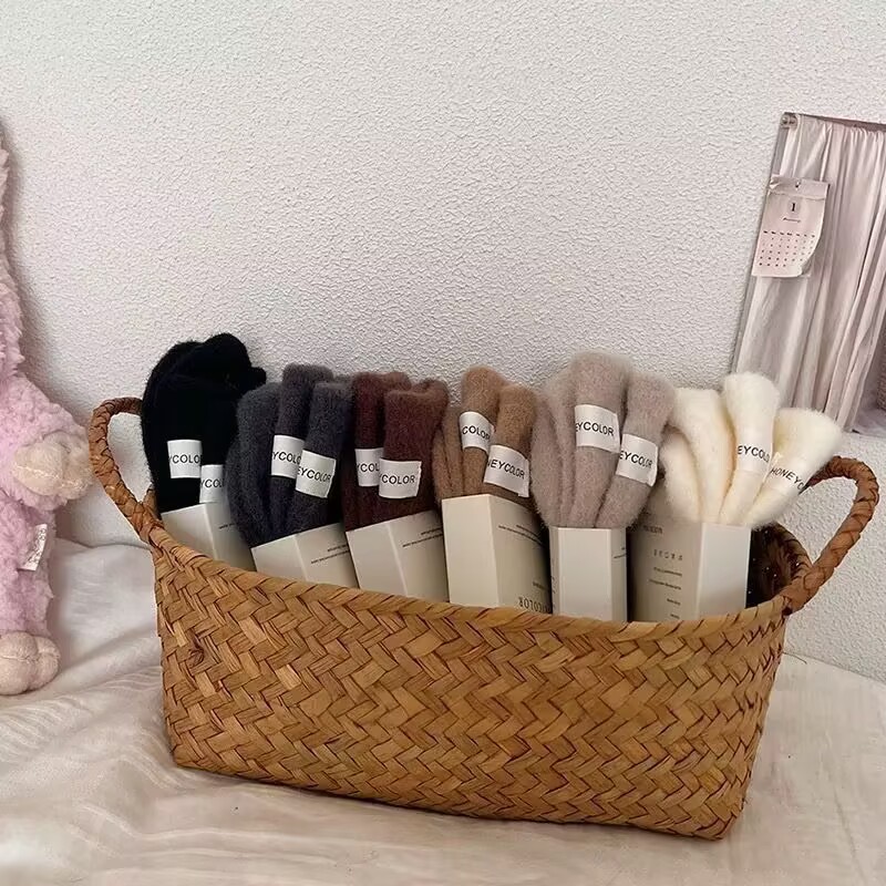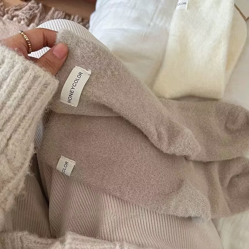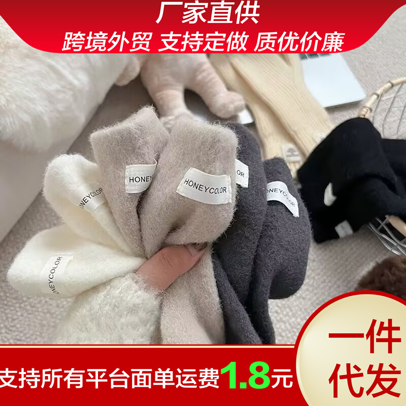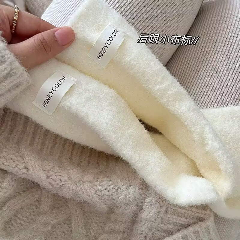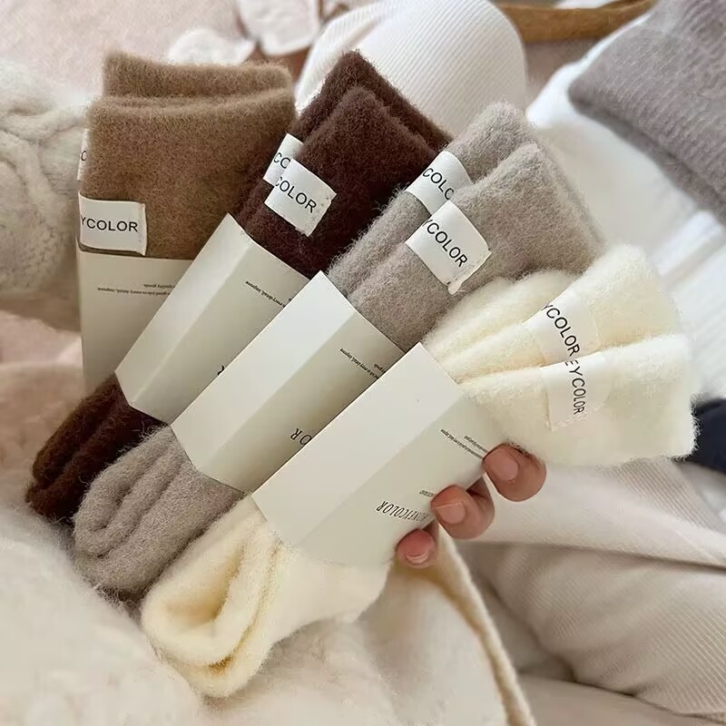 가을과 겨울 Maillard 벨벳 양말 단색 천 라벨 두꺼운 튜브 양말 모피 여성 양말 기모 감금 양말스토어 가기