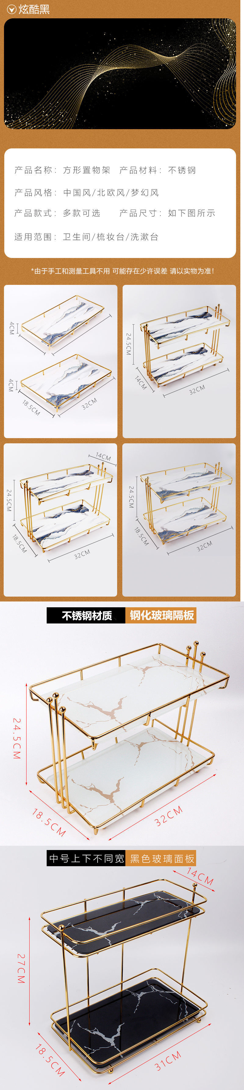 • 중간 이중층 상단은 좁고 하단은 넓음(금색) - 아크릴 투명 칸막이