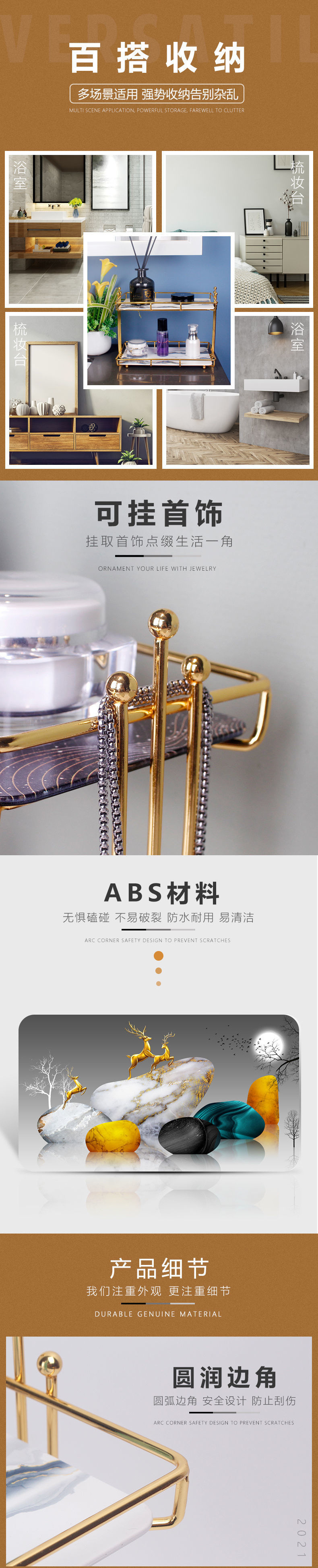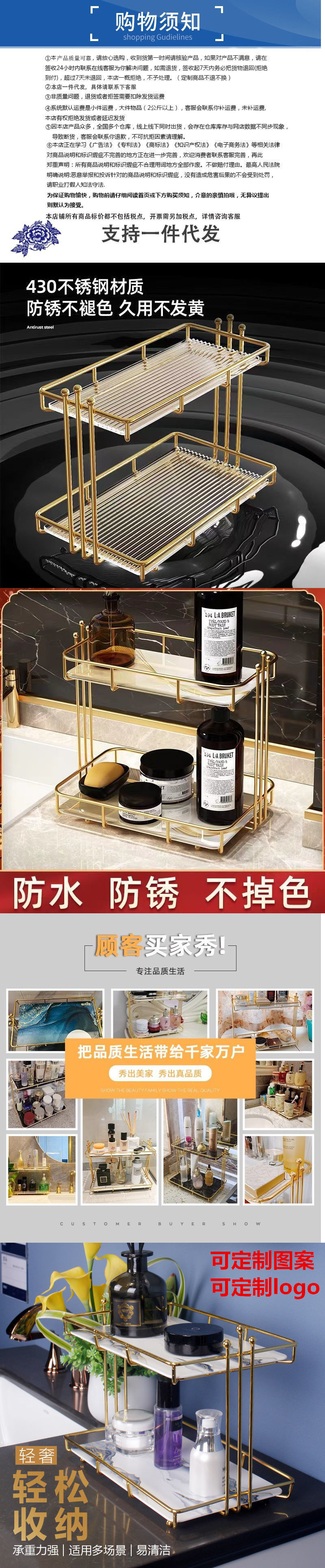 가벼운 고급 화장실 욕실 보관 랙 데스크탑 세탁기 화장품 상자 화장실 조리대 보관 랙