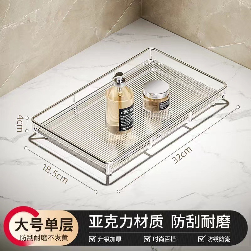 • 소형 단층 수납선반(실버) - 아크릴 투명 칸막이