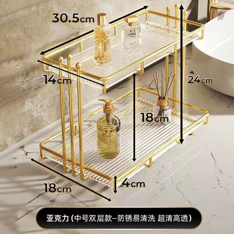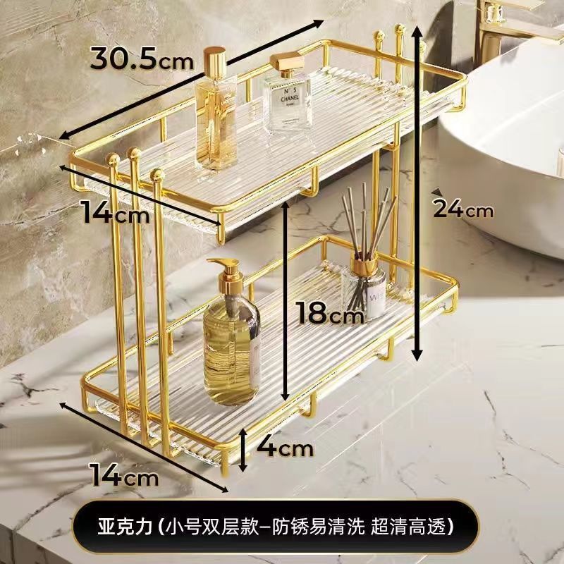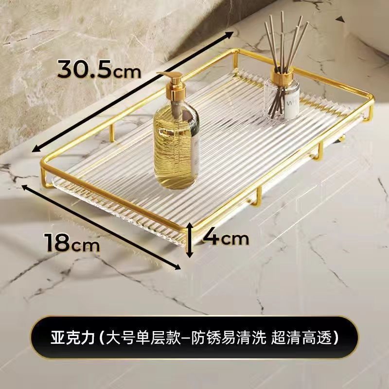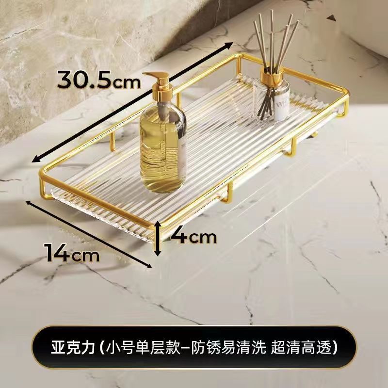 • 소형 단층 수납선반(골드) - 아크릴 투명 칸막이