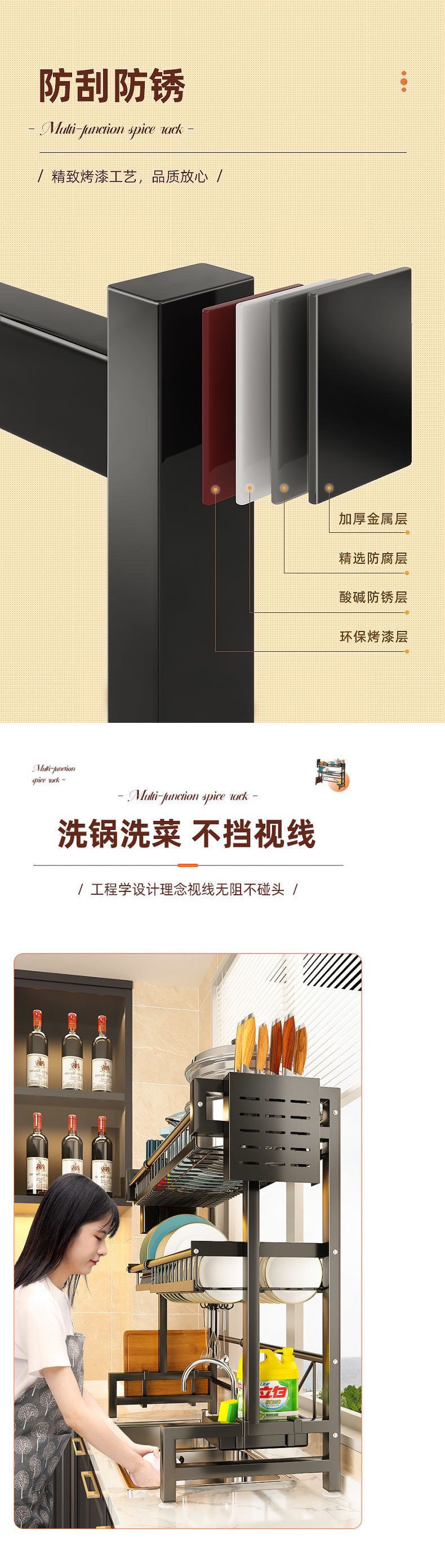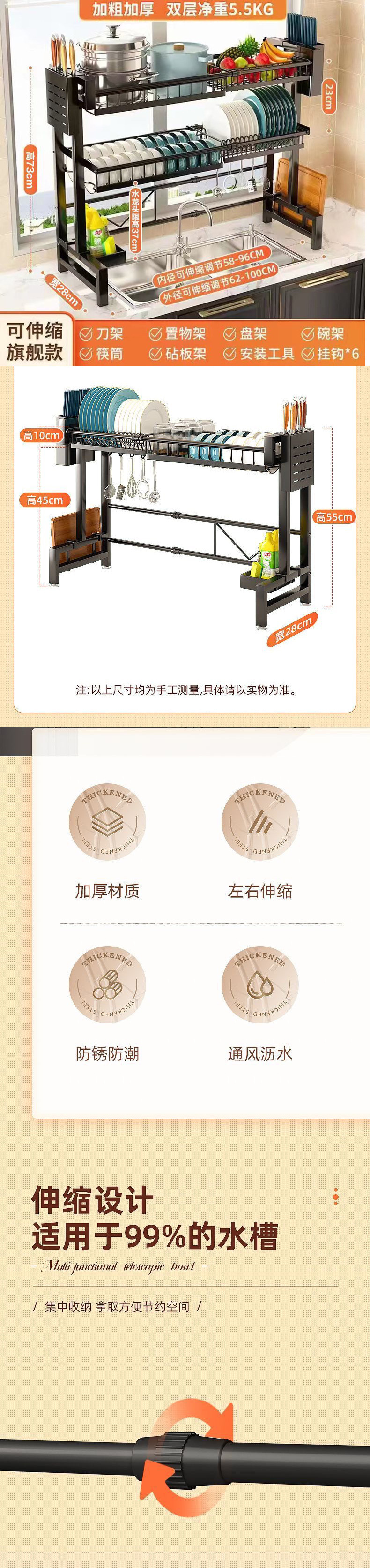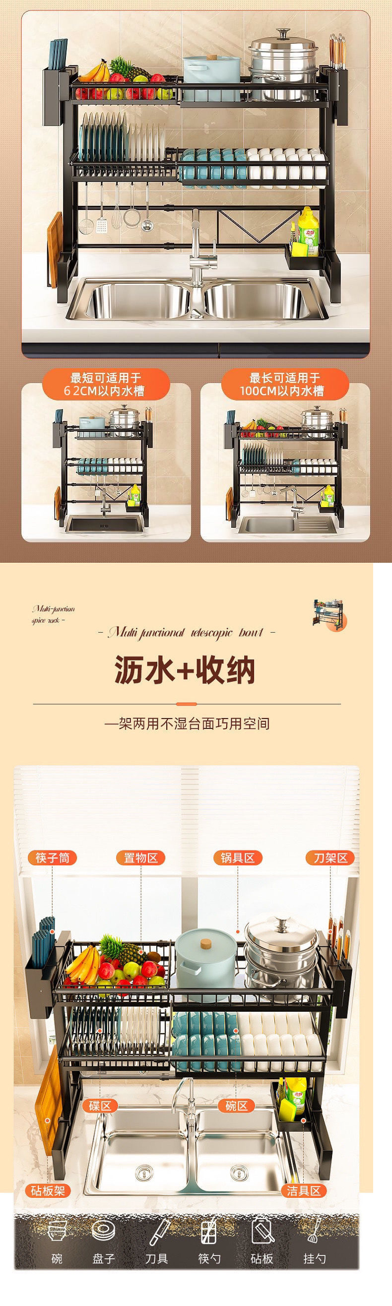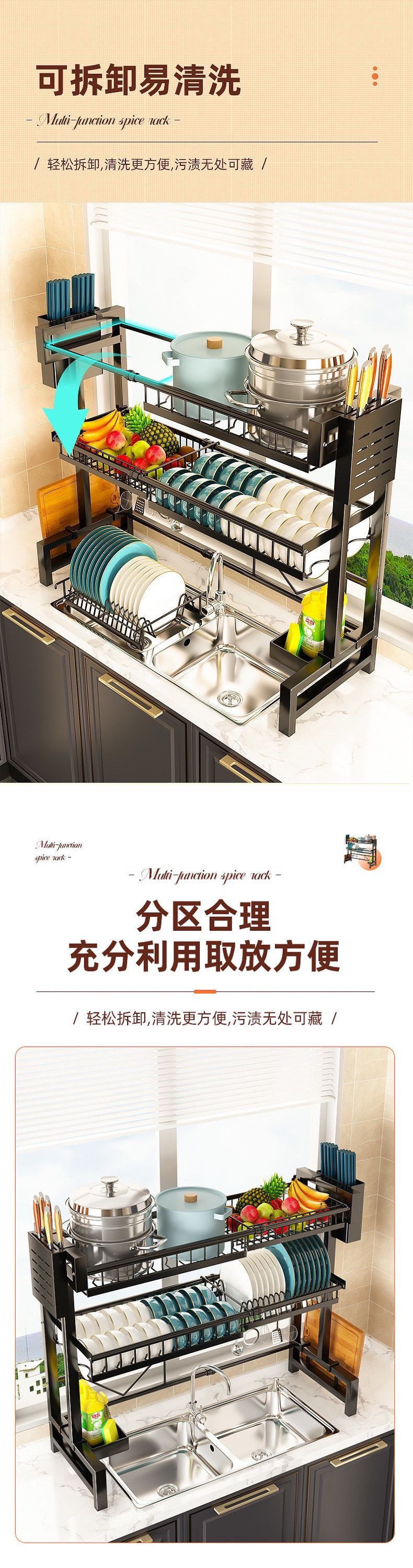 주방 보관 랙 싱크대 개폐식 테이블 그릇 및 접시 저장 탑 다기능 식기 세척 풀 요리 배수