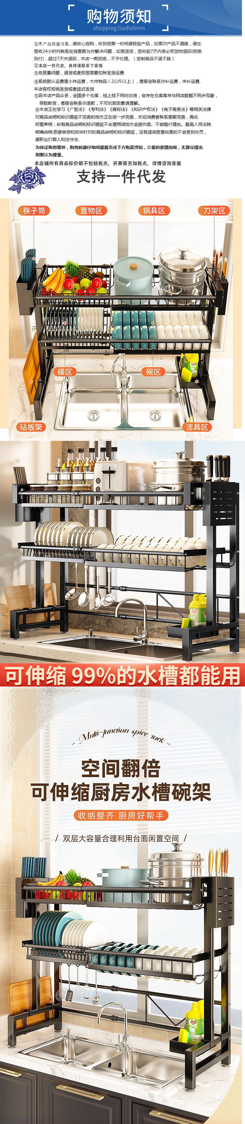 주방 보관 랙 싱크대 개폐식 테이블 그릇 및 접시 저장 탑 다기능 식기 세척 풀 요리 배수스토어 가기