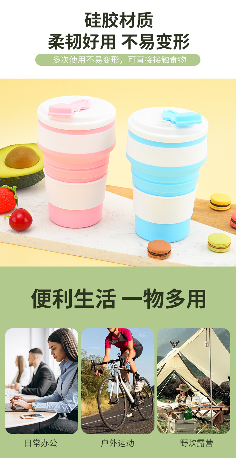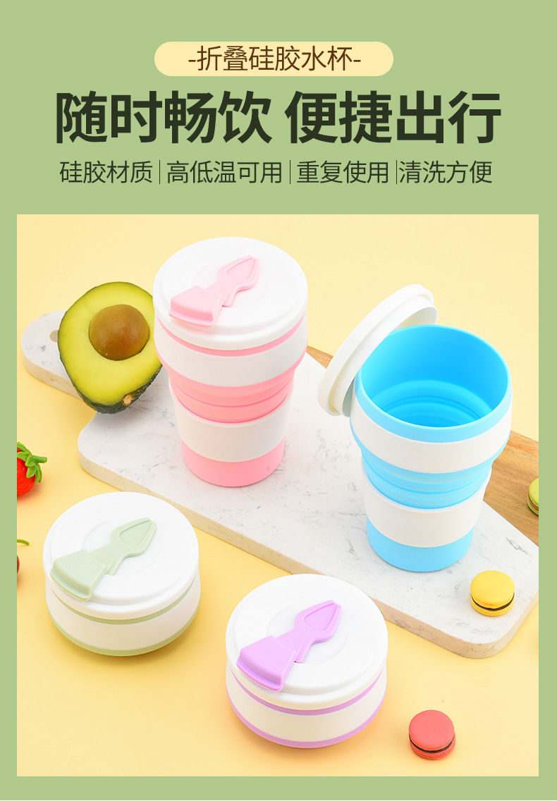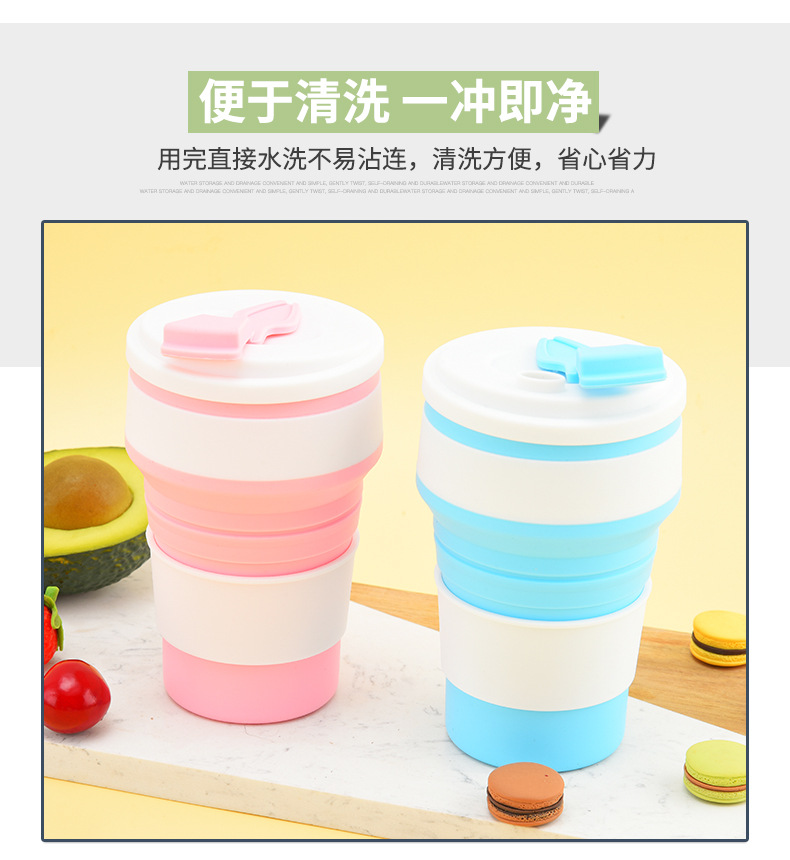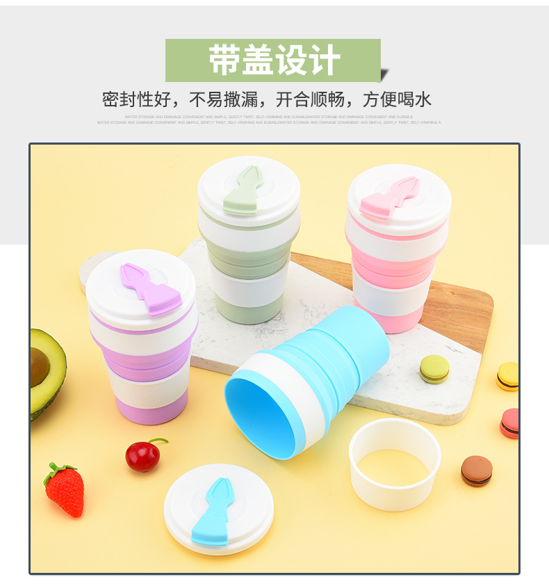 국경을 넘는 FCM/350ML 실리콘 접이식 물컵 야외 여행용 휴대용 컵 가정용 커피컵 텔레스코픽 컵