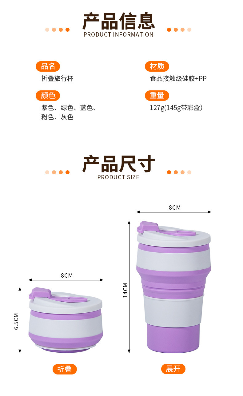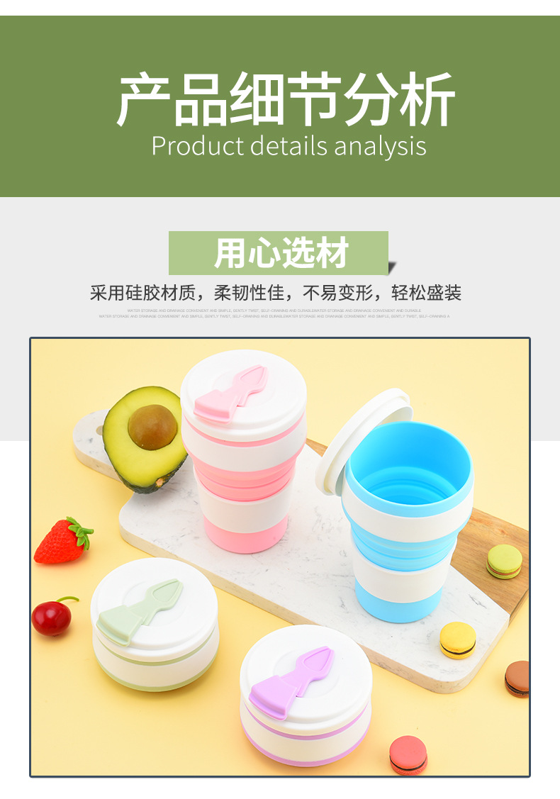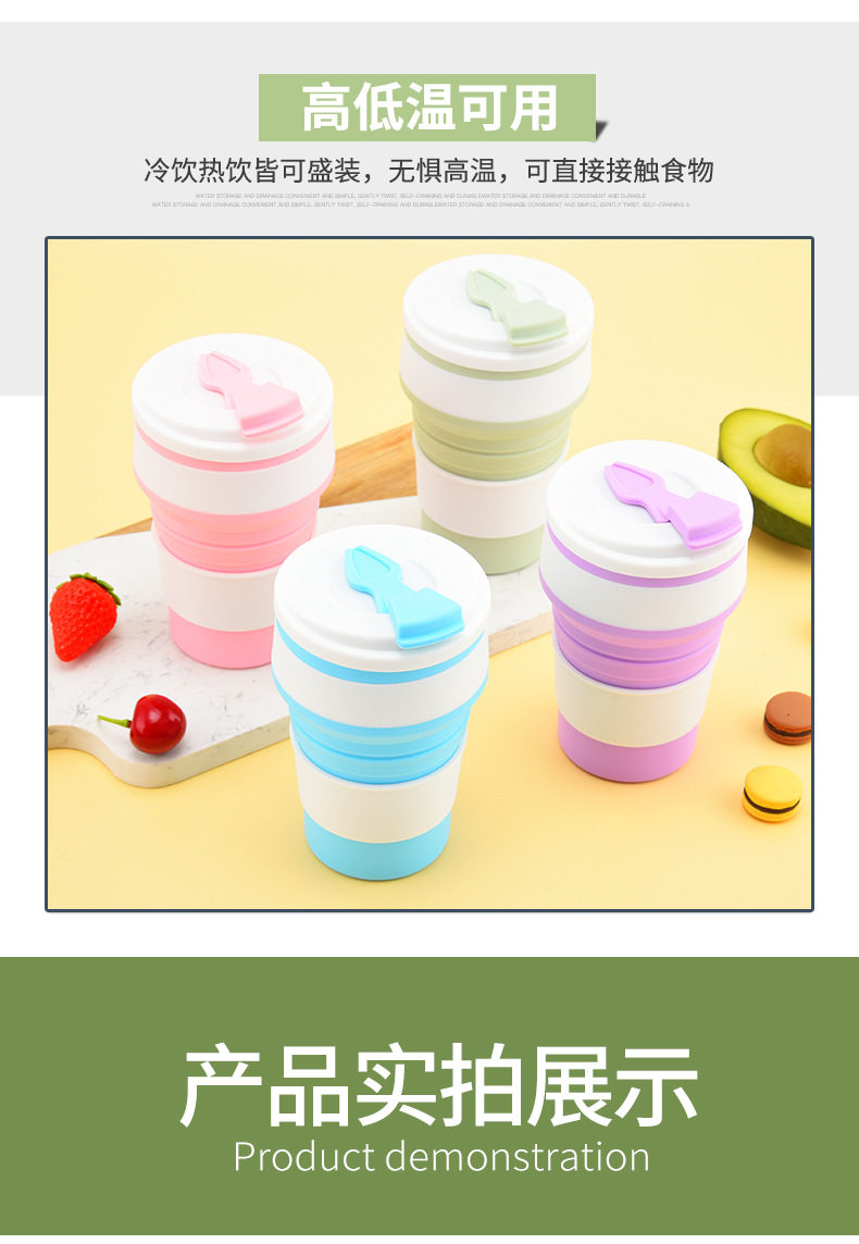 국경을 넘는 FCM/350ML 실리콘 접이식 물컵 야외 여행용 휴대용 컵 가정용 커피컵 텔레스코픽 컵