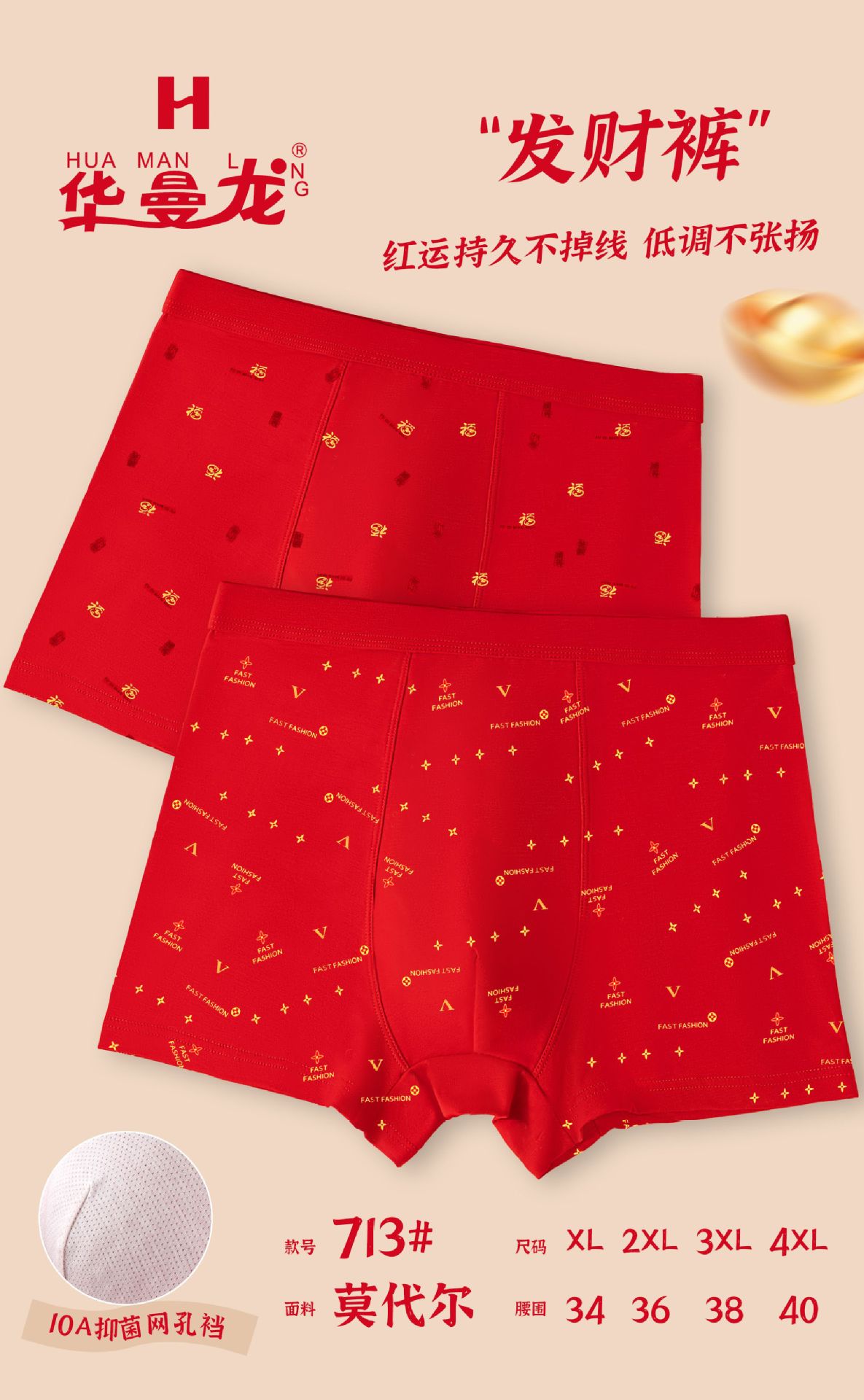 Audishang 5588 Boxer Cotton Fiber Big Red 항균 가방 루트 남성 복서 팬티