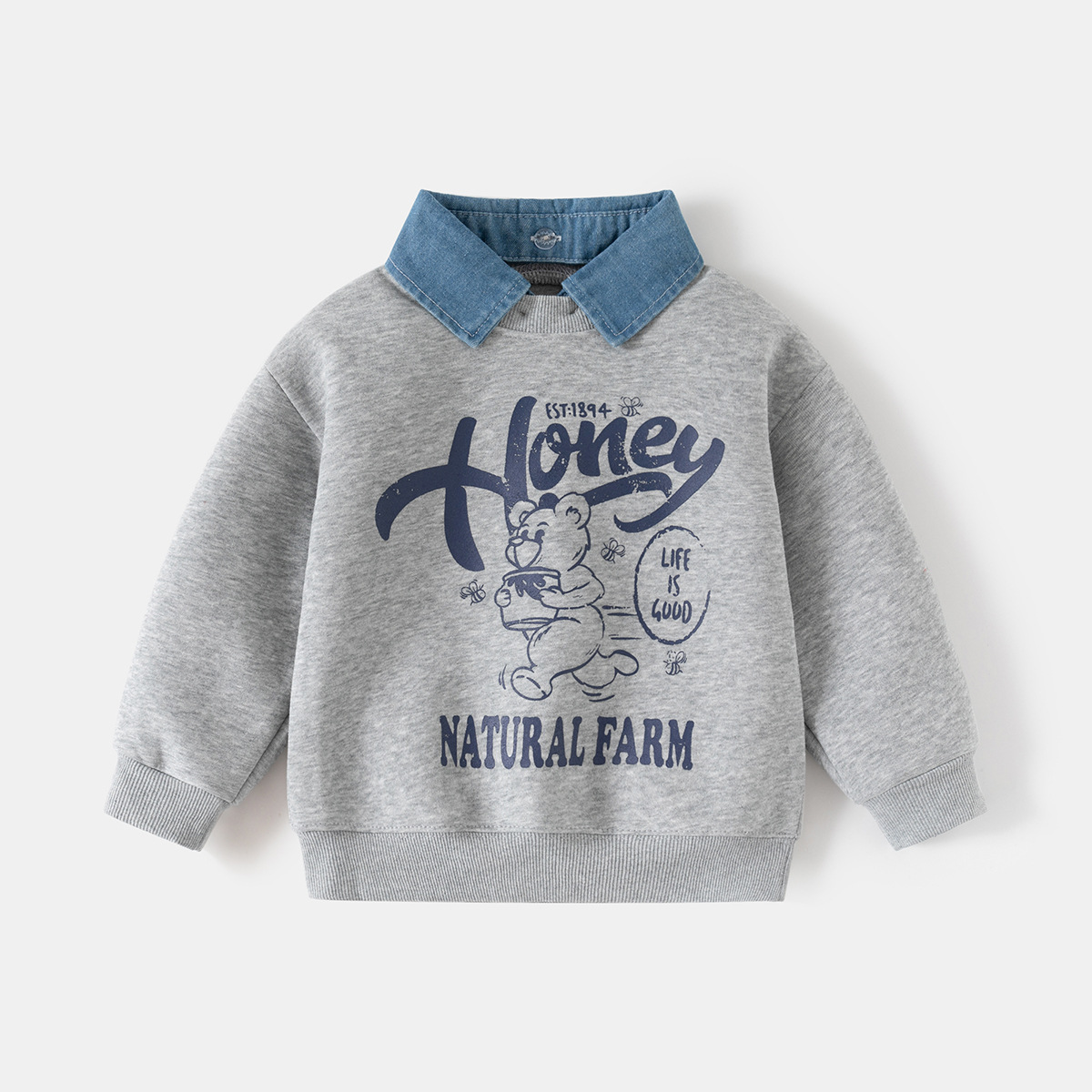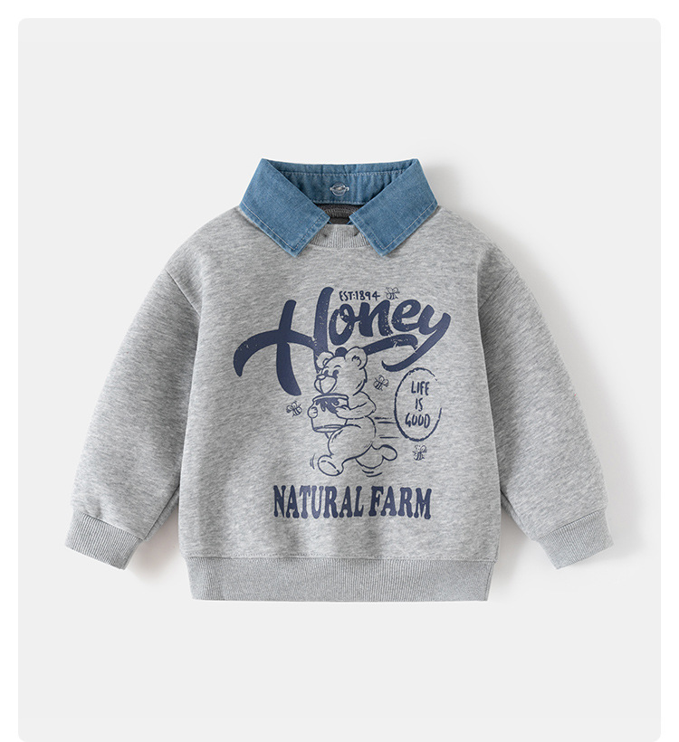 어린이 가짜 투피스 스웨터 봄 새로운 한국 아동복 소년 분리 가능한 칼라 코트 조수 베이비 코트 도매스토어 가기