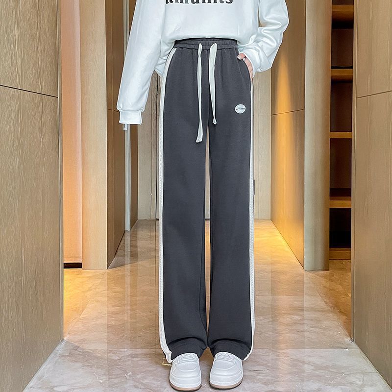 회색 캐주얼 긴 넓은 다리 스포츠 바지 여자 키가 큰 스트레이트 바지 가을 겨울 기모 2023 새로운 학생 운동복스토어 가기
