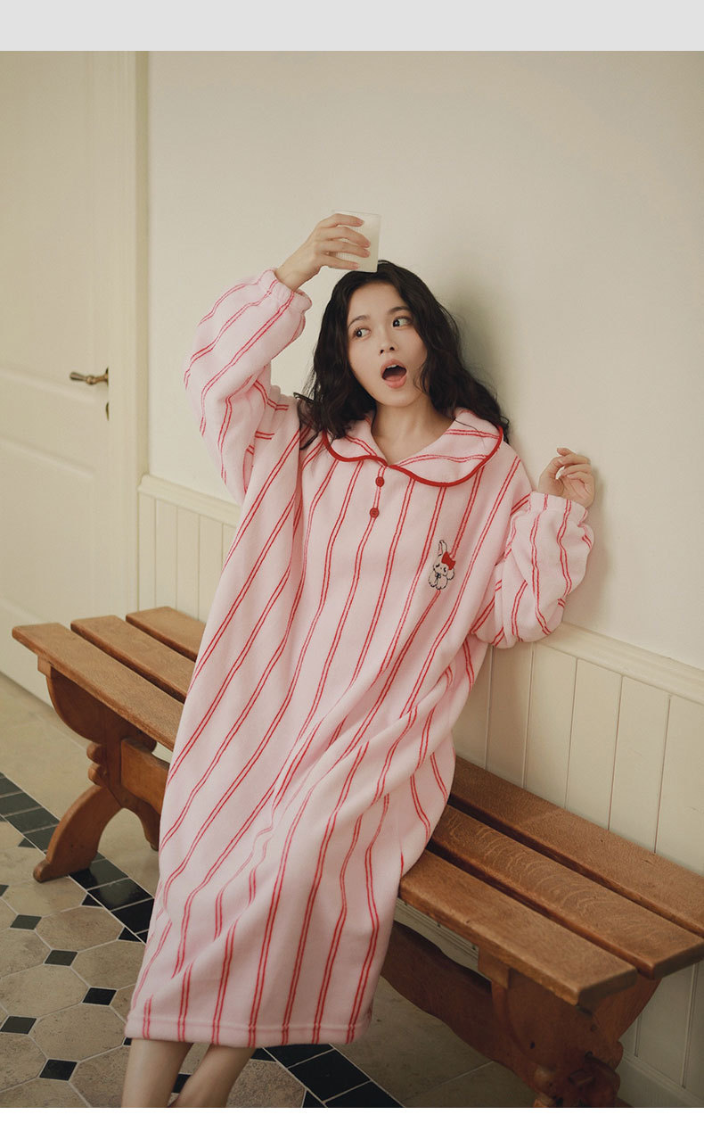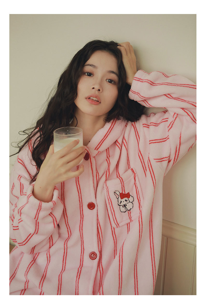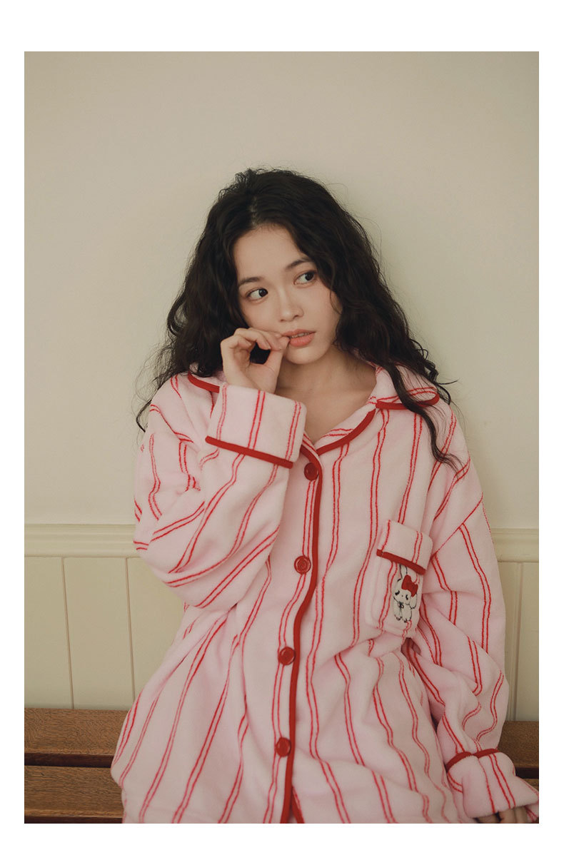 • 여성용 잠옷.-핑크 스트라이프-.플란넬