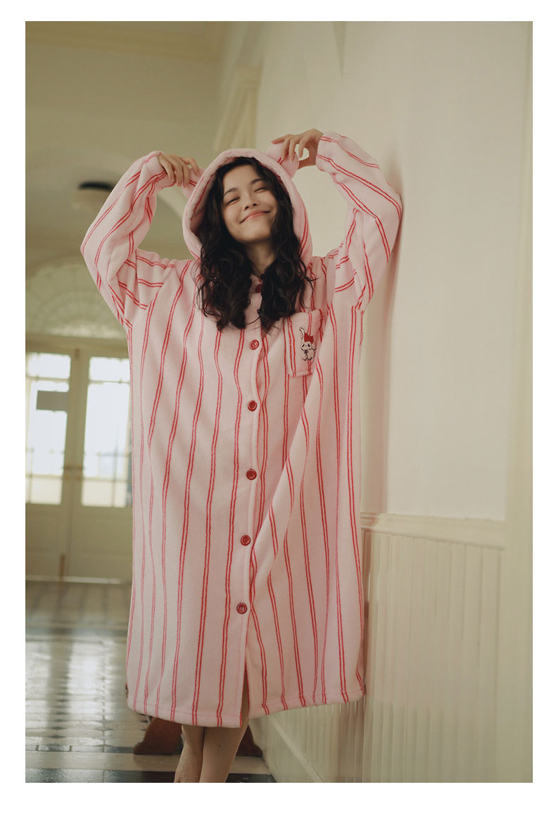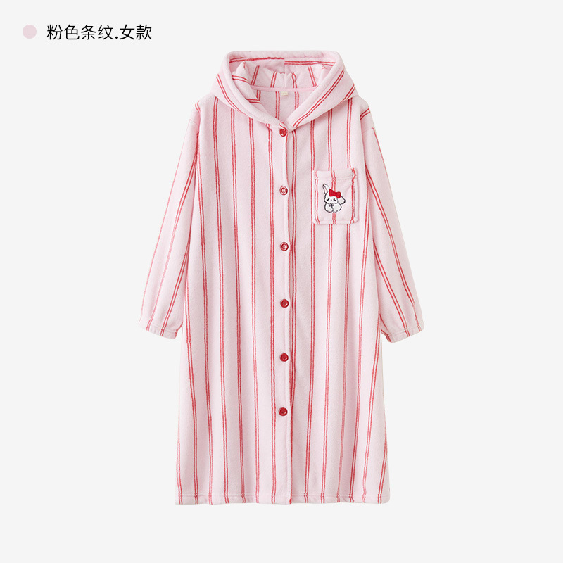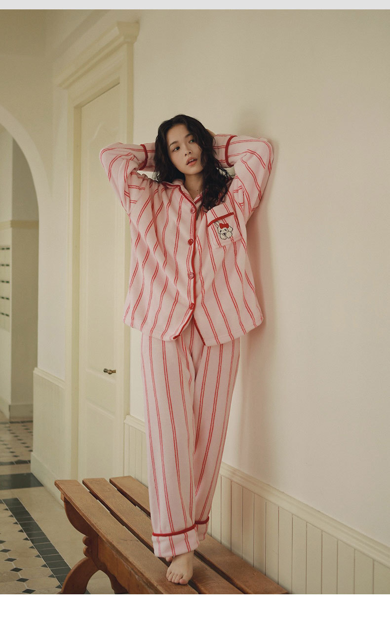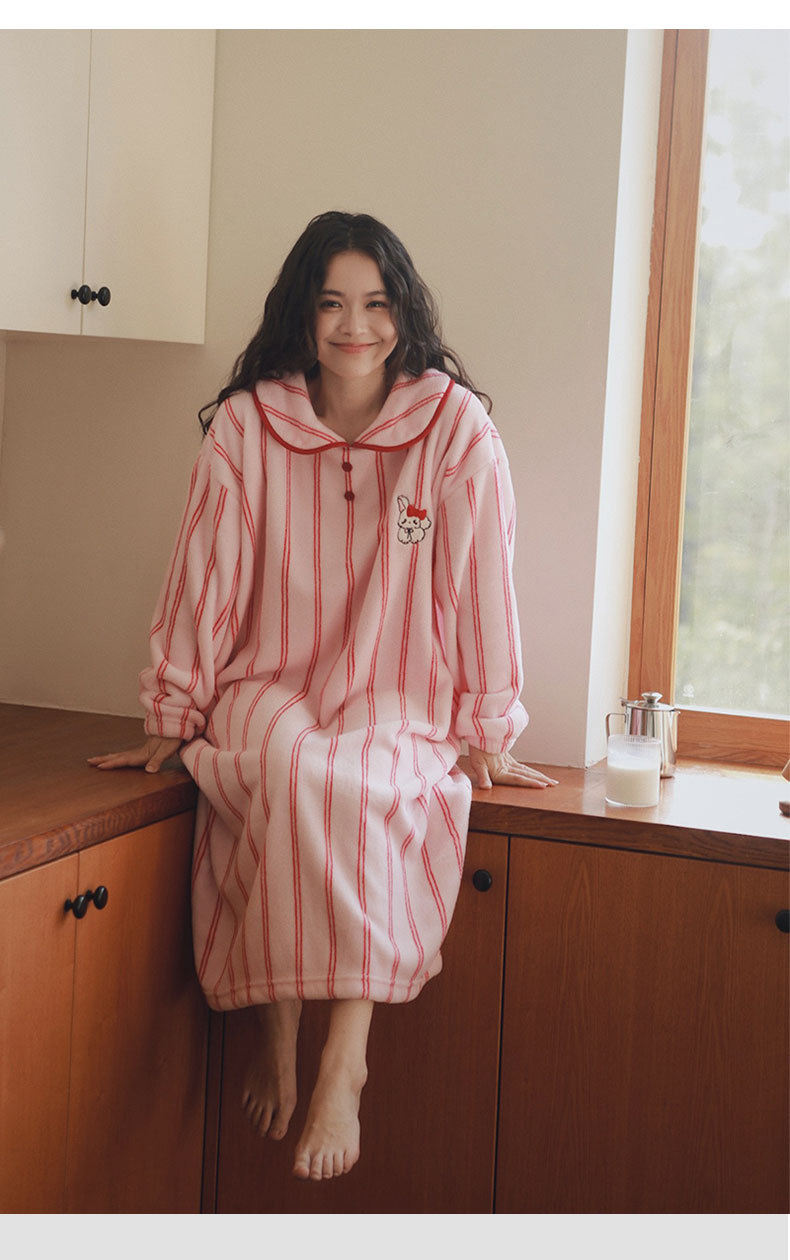• 여성용 잠옷.-핑크 스트라이프-.플란넬