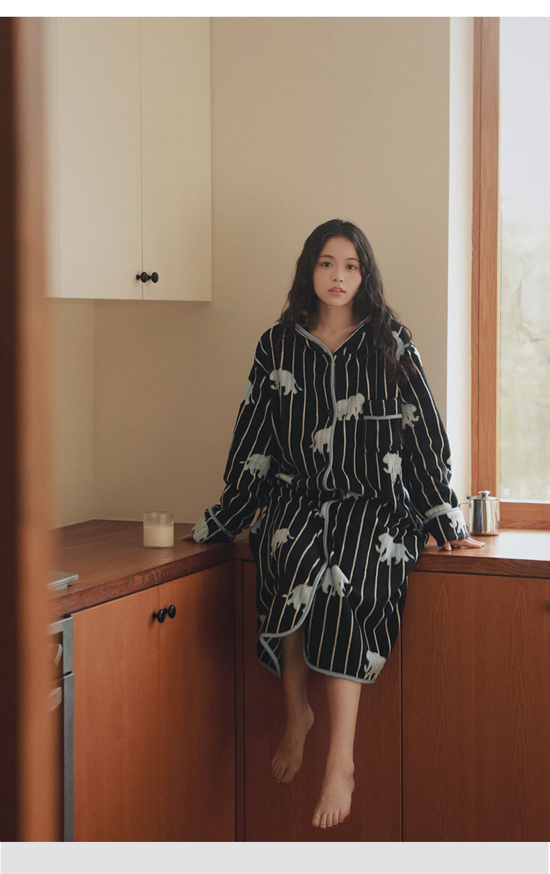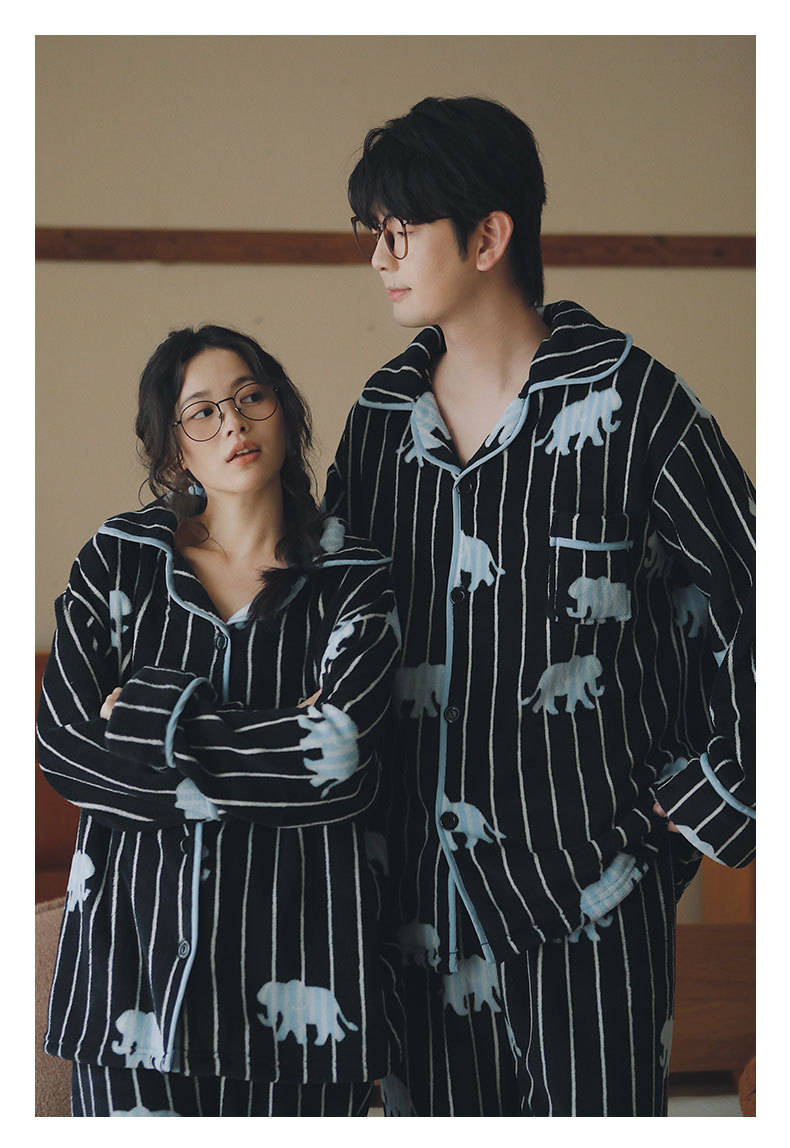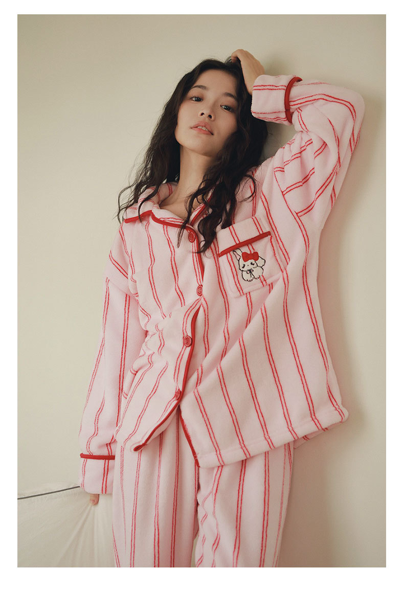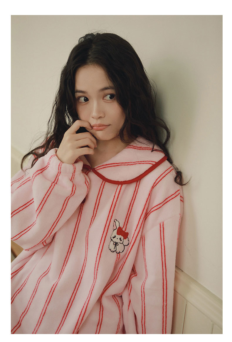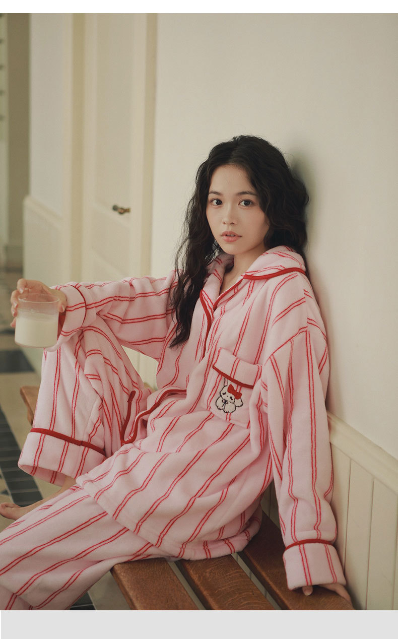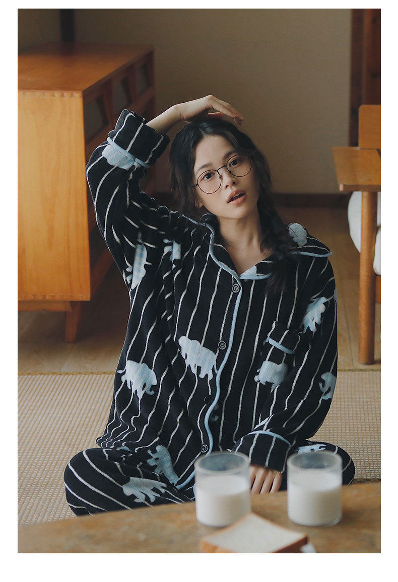 재고정리! 반품, 교환 불가! 가을 겨울 여성용 잠옷 두꺼운 플란넬 홈웨어 야수 코랄벨벳 세트