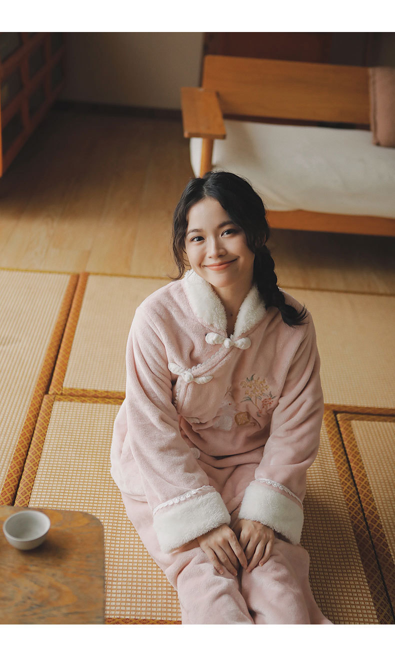 재고정리! 반품, 교환 불가! 가을 겨울 여성용 잠옷 두꺼운 플란넬 홈웨어 야수 코랄벨벳 세트스토어 가기