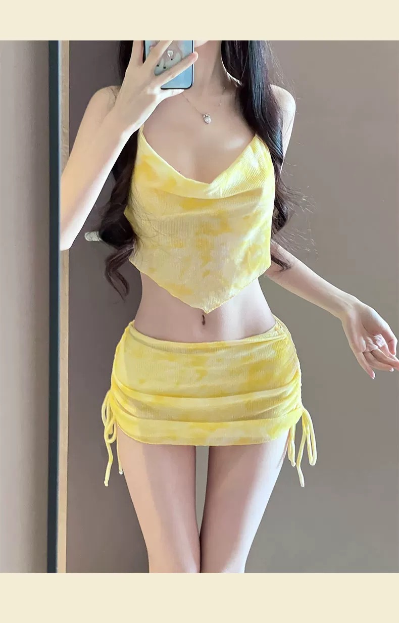 수영복 2025 새로운 섹시한 스커트 비키니 분할 3 피스 블라우스 슬리밍 홀리데이 비치 스파