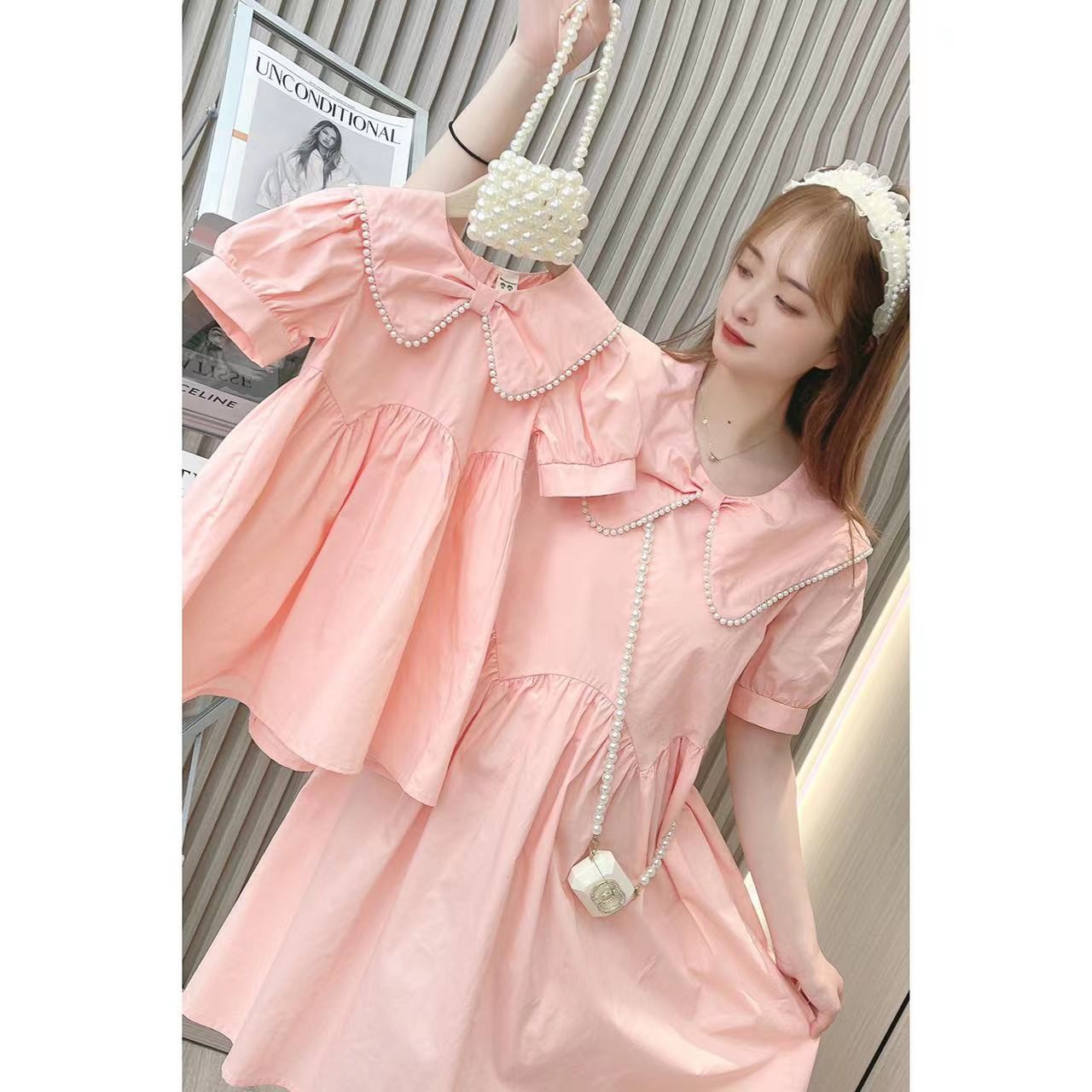 2024 여름 새로운 어린이 소녀 한국 진주 단색 원피스스토어 가기
