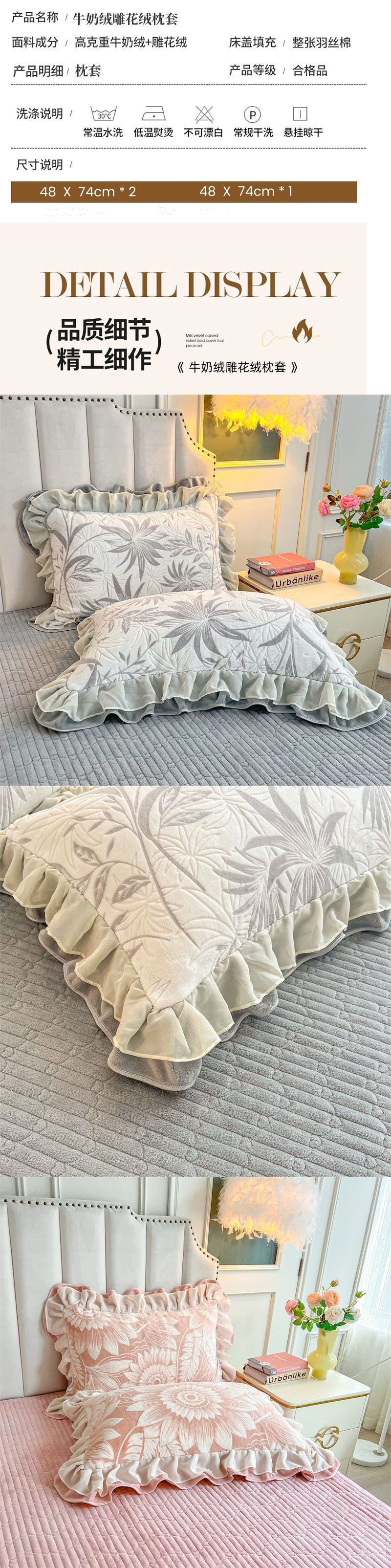새로운 우유 조각 벨벳 베개 케이스 한 쌍의 더블 레이스 싱글 벨벳 베개 커버 4874 따뜻한 두꺼운 베개 가죽스토어 가기