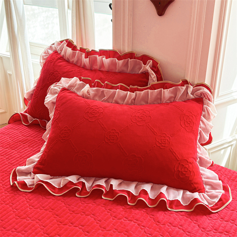 새로운 우유 조각 벨벳 베개 케이스 한 쌍의 더블 레이스 싱글 벨벳 베개 커버 4874 따뜻한 두꺼운 베개 가죽