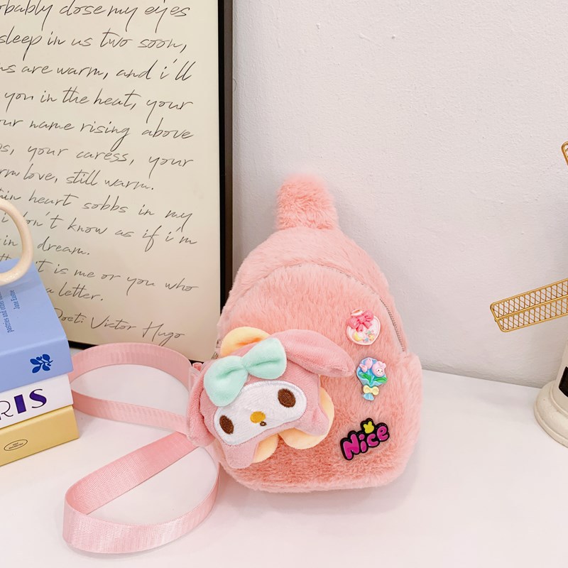 어린이 가방 가을과 겨울 새로운 핑크 봉제 귀여운 소녀 크로스 바디 백 스타일 아기 만화 작은 가슴 가방 동전 지갑스토어 가기