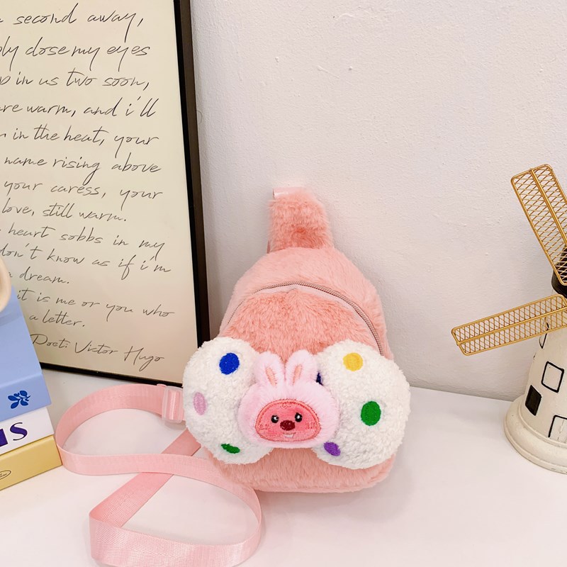 어린이 가방 가을과 겨울 새로운 핑크 봉제 귀여운 소녀 크로스 바디 백 스타일 아기 만화 작은 가슴 가방 동전 지갑