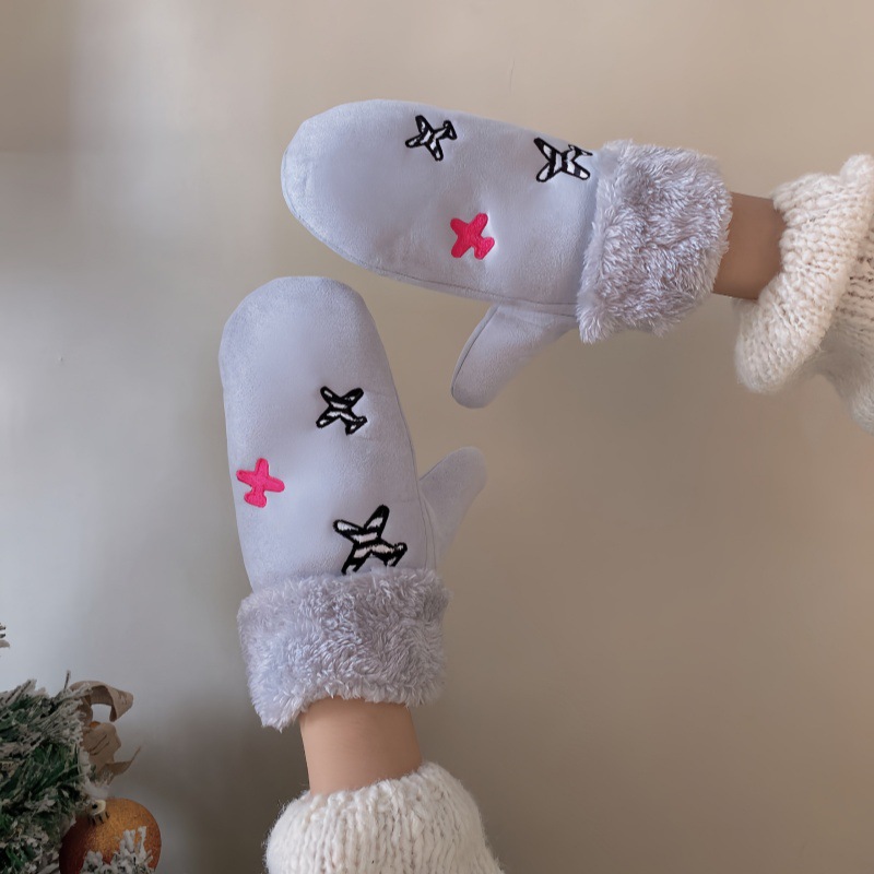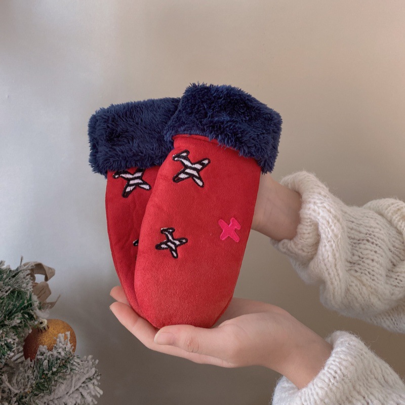 겨울 달콤한 큰 어린이 따뜻한 장갑 남녀 귀여운 모피 핸드백 풀 핑거 기모 면화 장갑 학생 사이클링