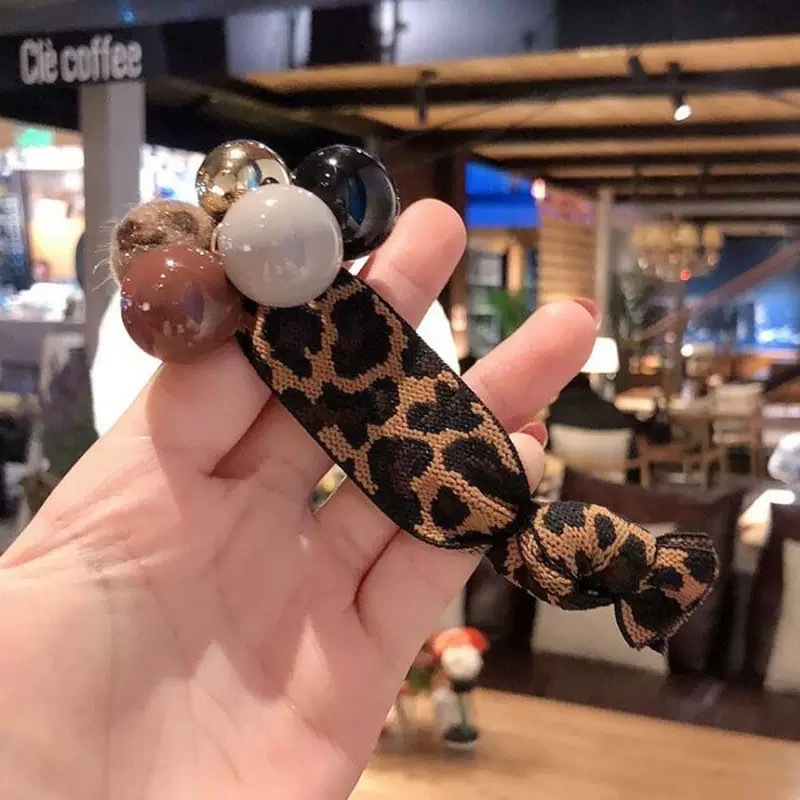 • 블랙 볼 스타일 표범 무늬 머리끈