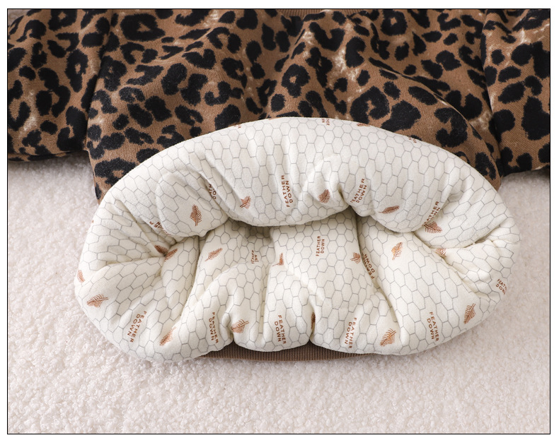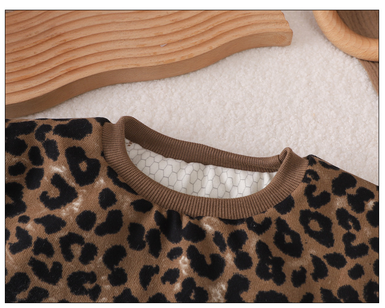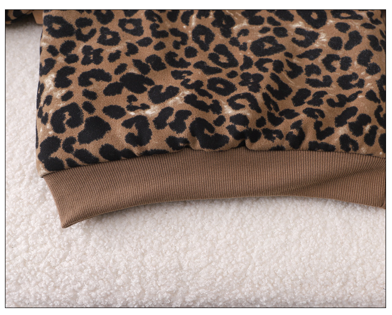 레오파드 무늬 새로운 둥근 목 풀오버 기모 스웨터 가을과 겨울 아기 겨울 두꺼운 따뜻한 옷은 머리카락 세대를 지원합니다.
