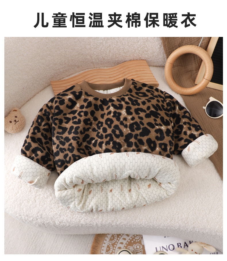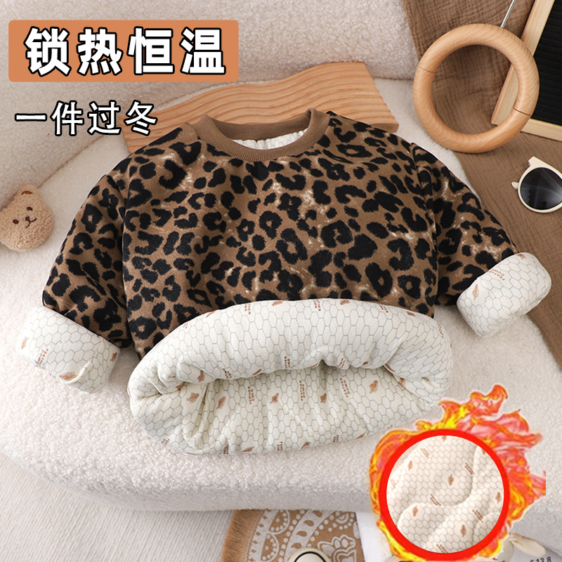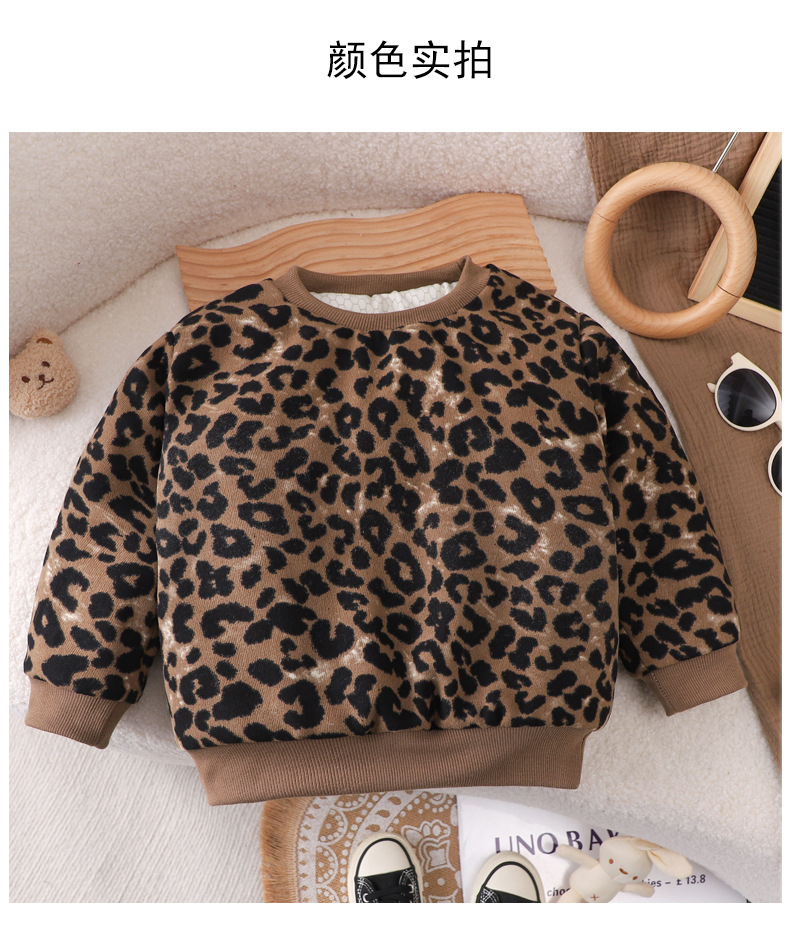 레오파드 무늬 새로운 둥근 목 풀오버 기모 스웨터 가을과 겨울 아기 겨울 두꺼운 따뜻한 옷은 머리카락 세대를 지원합니다.스토어 가기