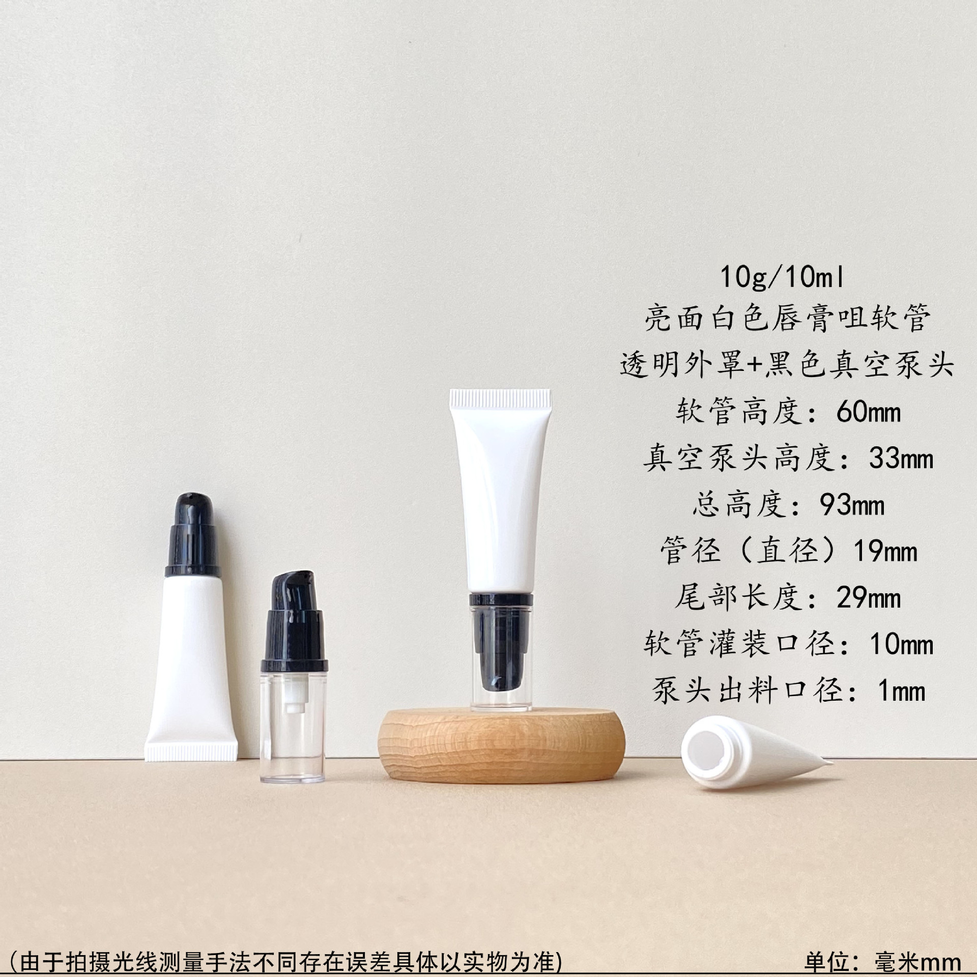 • ♛♛♛10g 흰색 립스틱 튜브 + 검정색 진공 펌프 헤드 + 투명 외부 캡♛♛♛