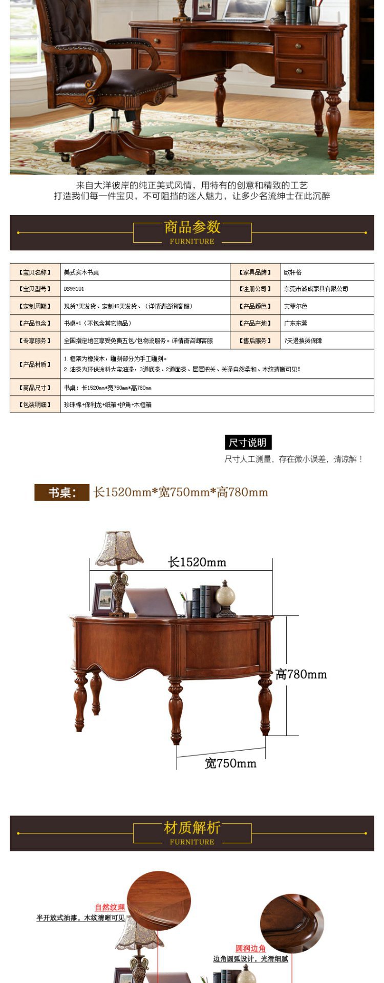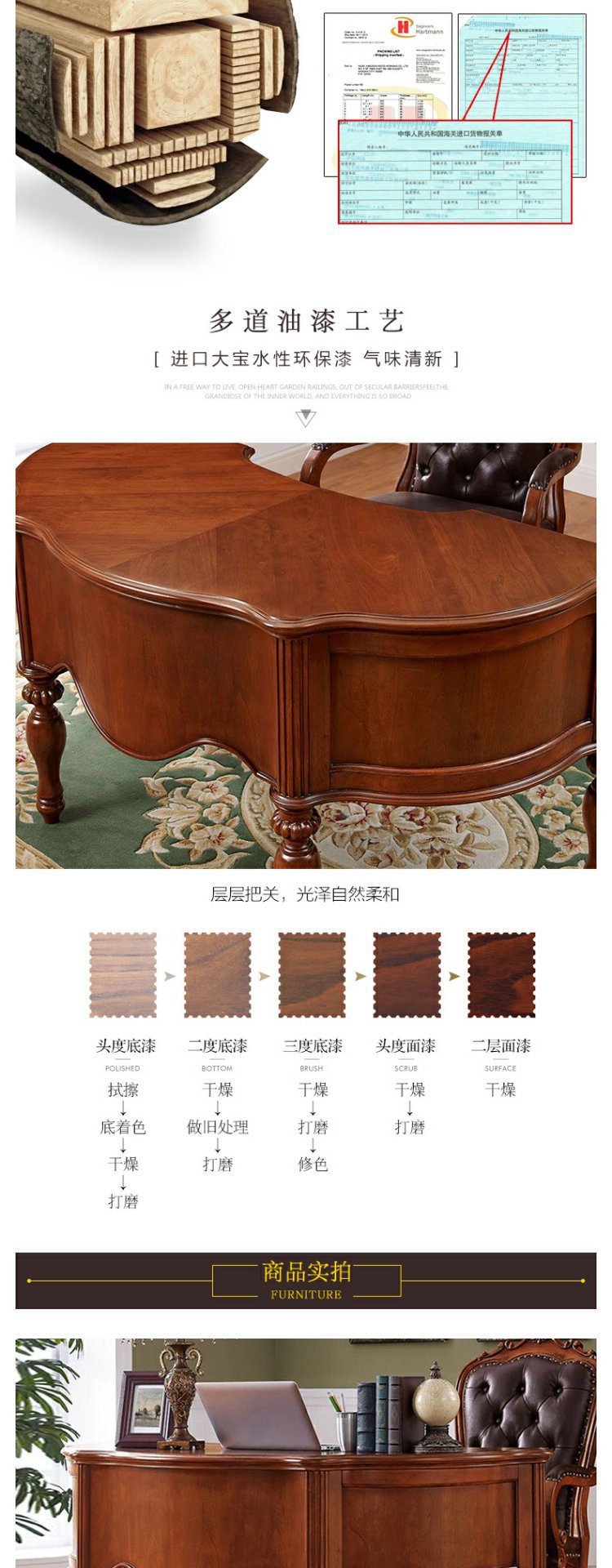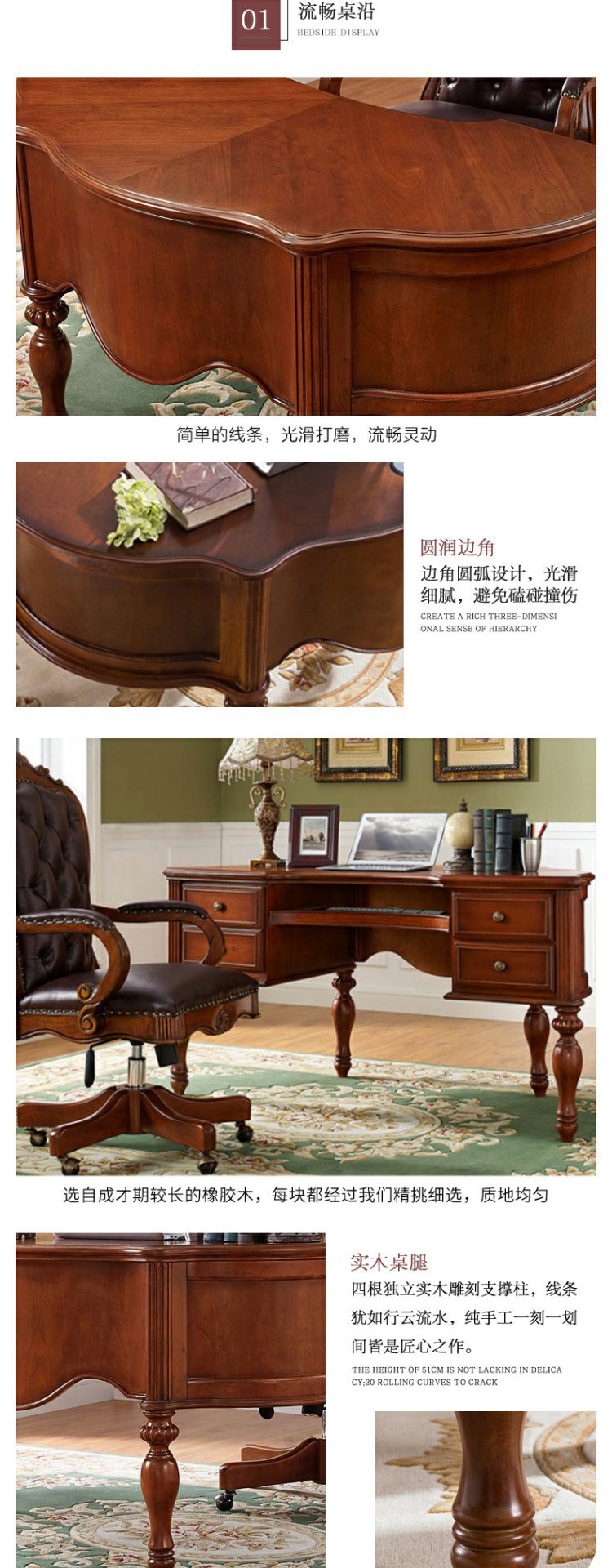 아메리칸 스타일 솔리드 우드 데스크 큰 데스크 보스 데스크 사무실 책상 책상 홈 스터디 럭셔리 데스크