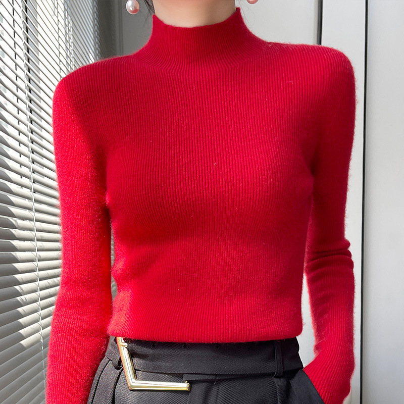 절반 높이의 칼라베이스 셔츠 여성용 내부 슬림 핏 가을 및 겨울 새로운 올 매치 타이트 스웨터 니트 스웨터 여성용스토어 가기
