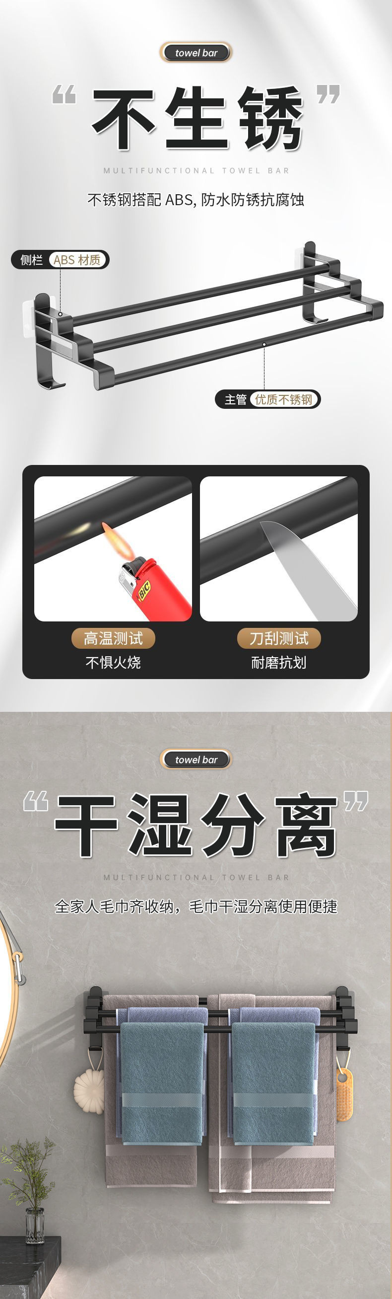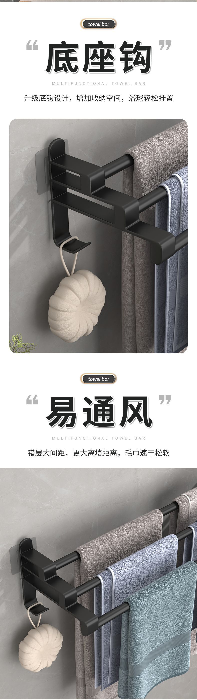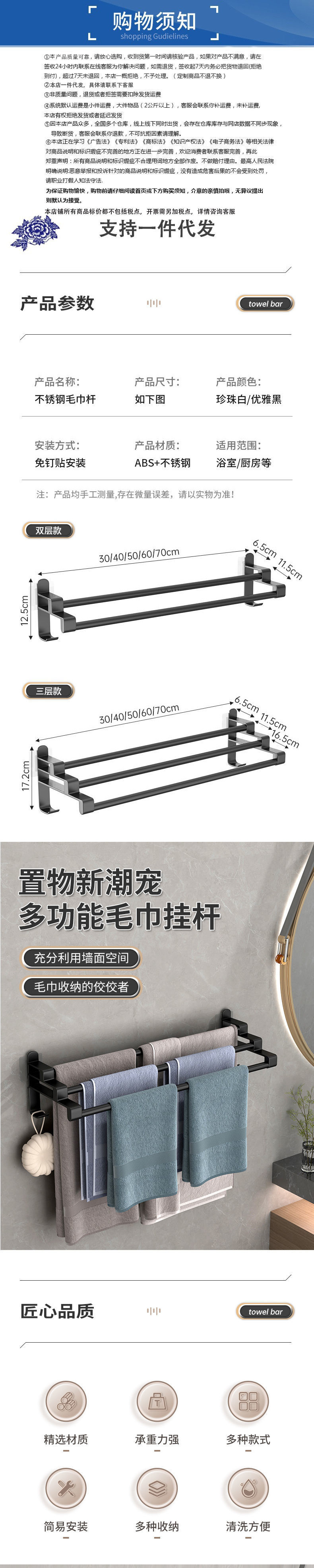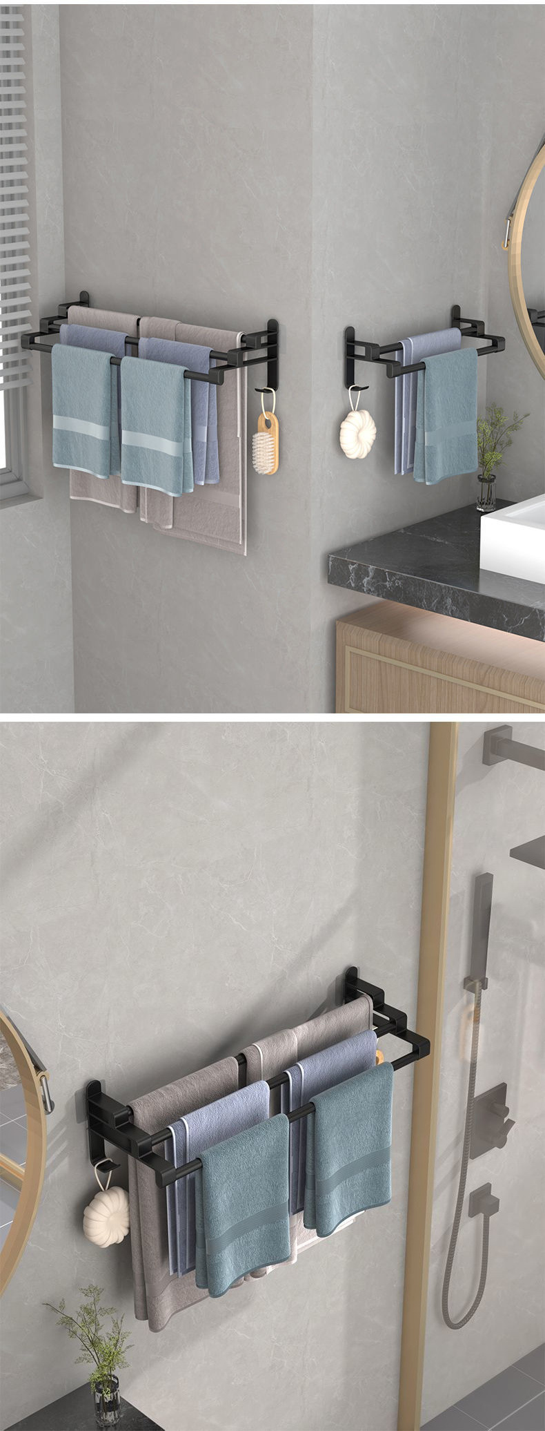 수건 막대 화장실 비 천공 스테인레스 스틸 타월 랙 스토리지 랙 간단한 수건 랙