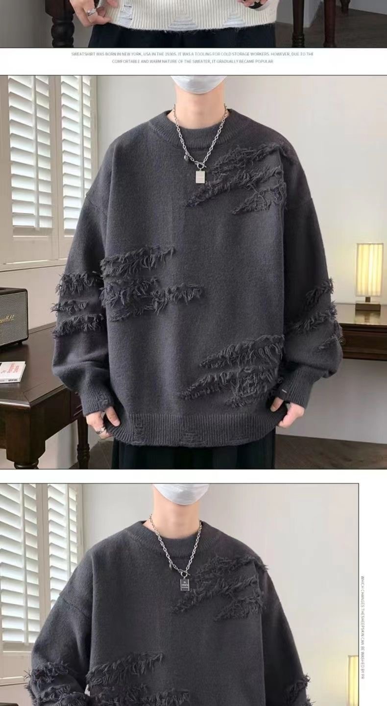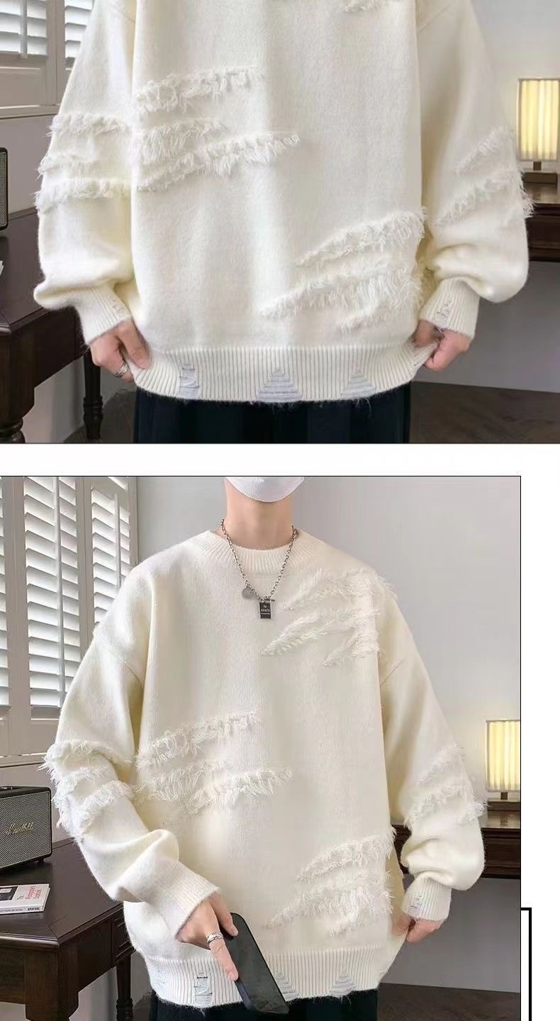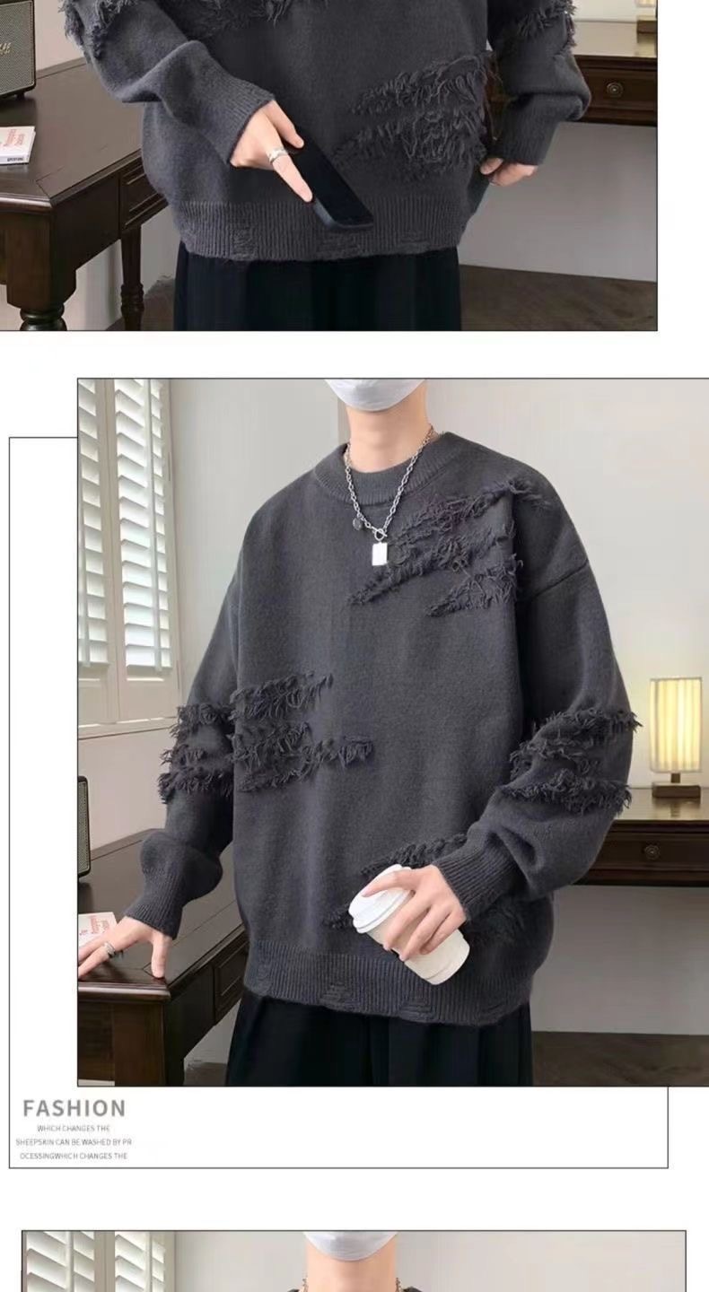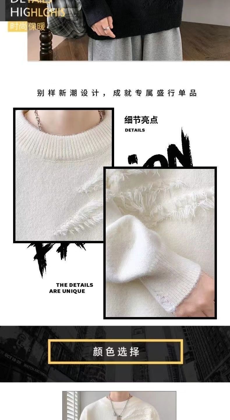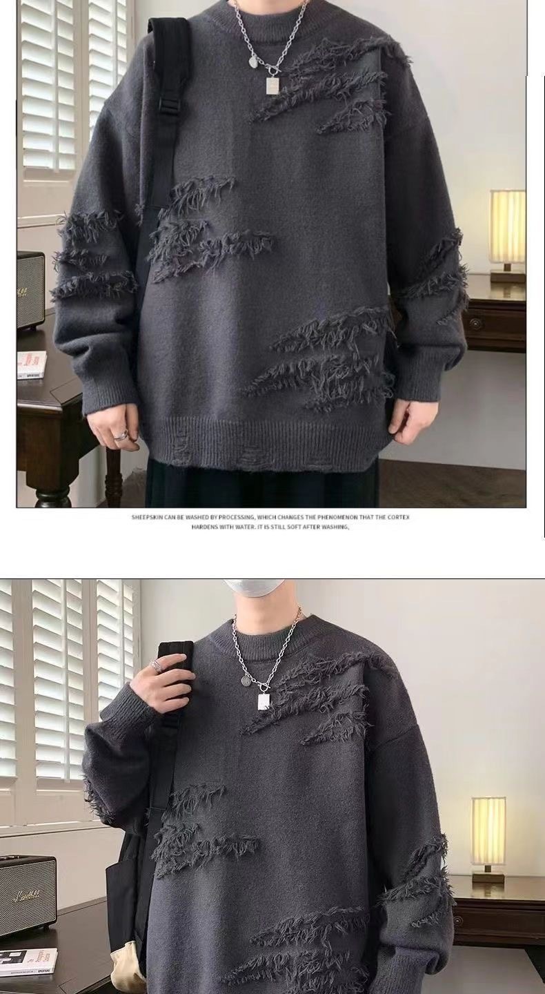 독특한 크루넥 스웨터 남자 가을 겨울 2023 기모 두꺼운 니트 스웨터 남자 레트로 게으른 스웨터 재킷스토어 가기