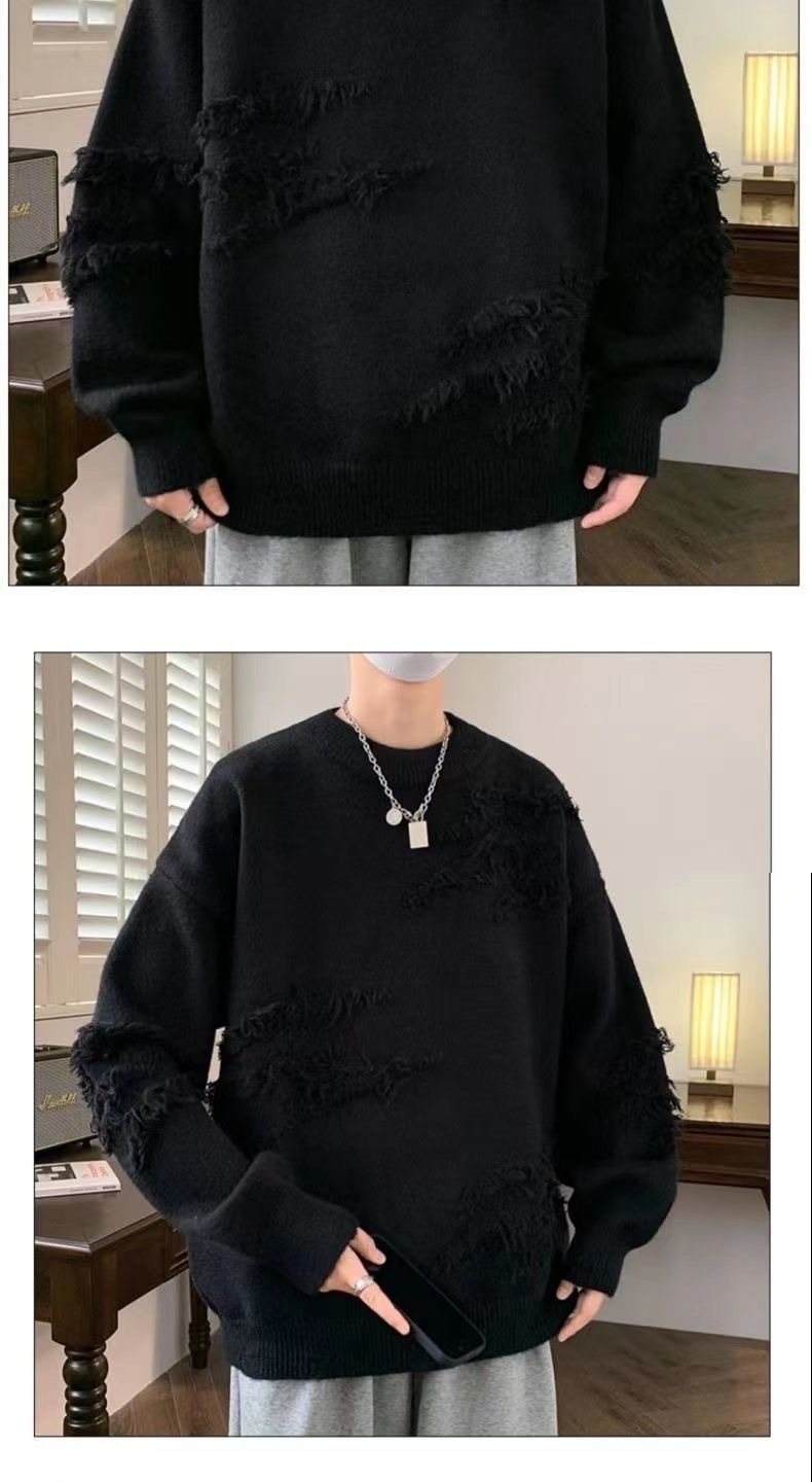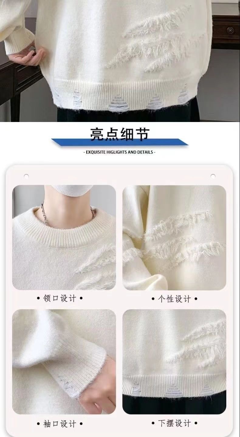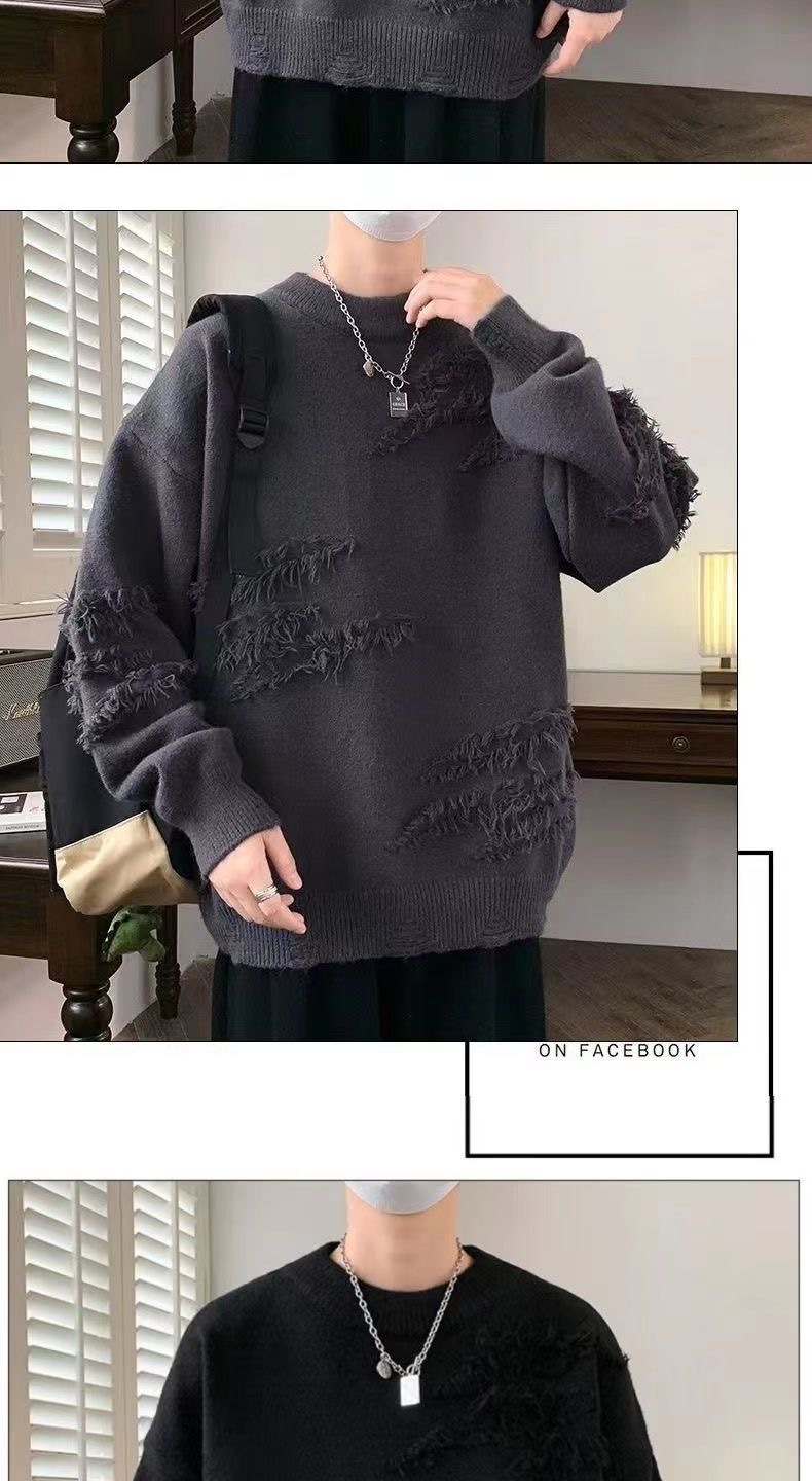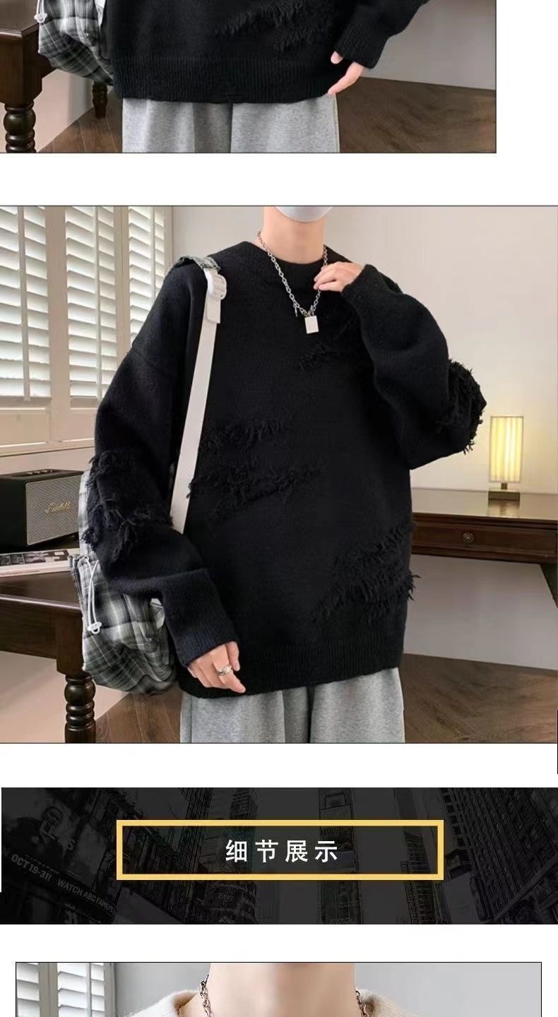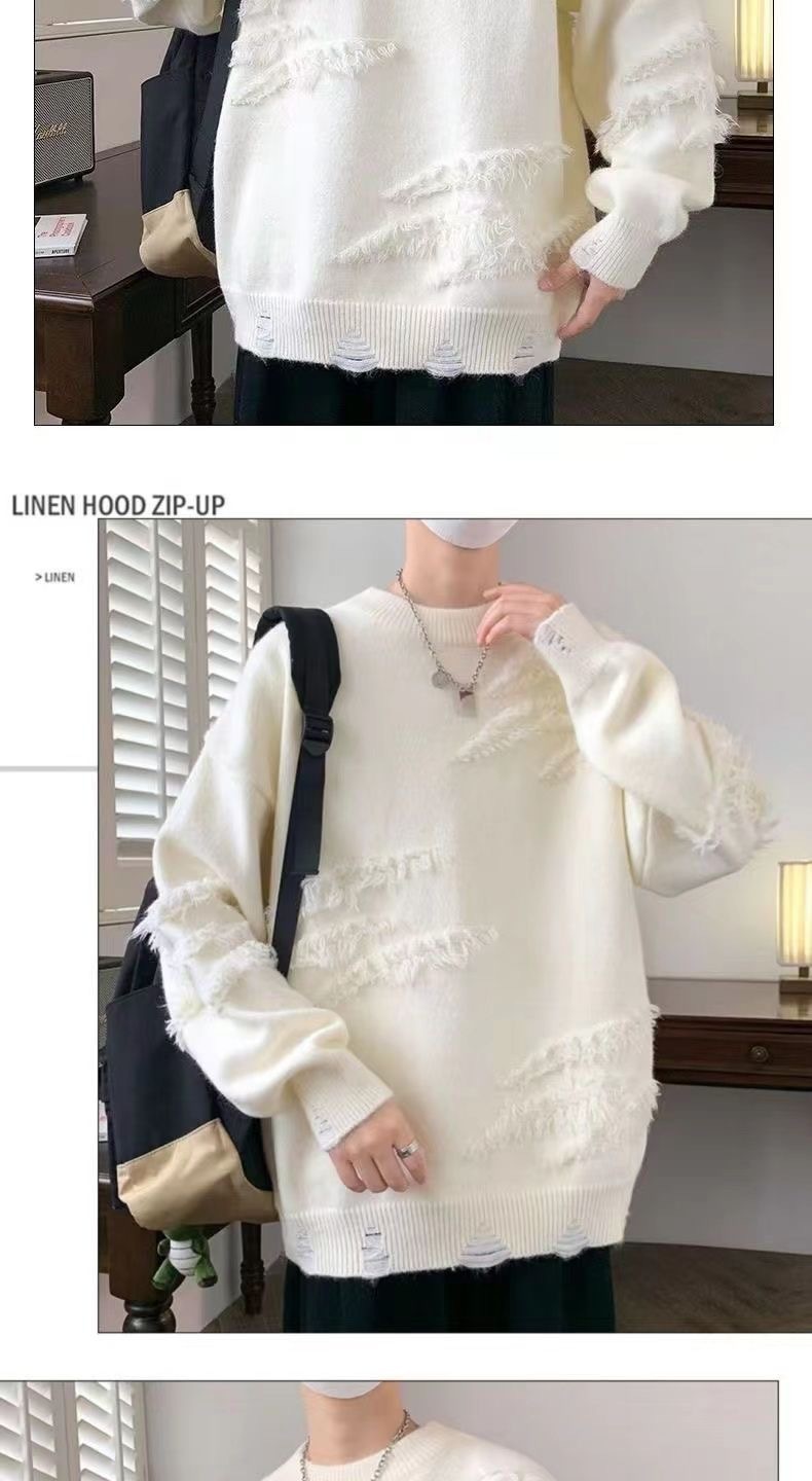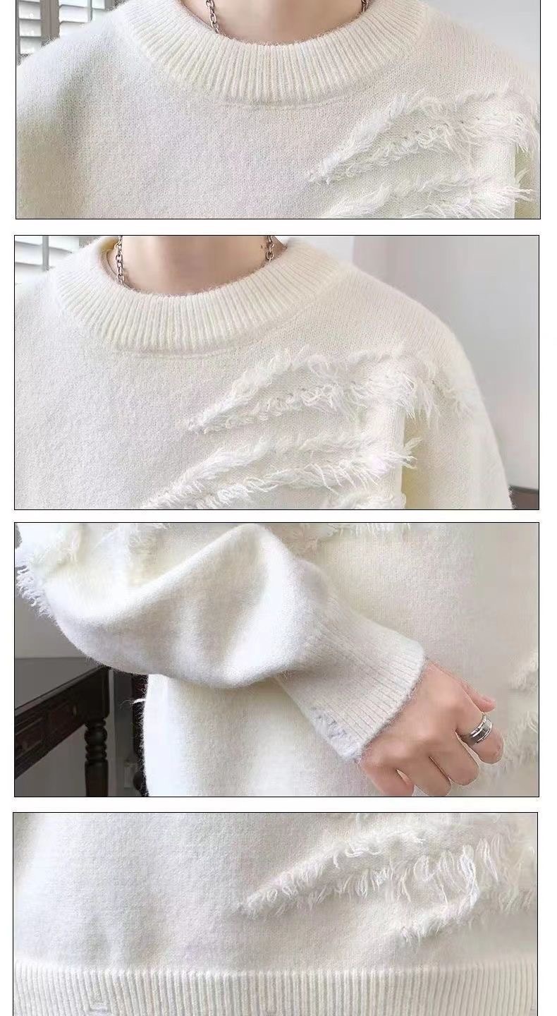 독특한 크루넥 스웨터 남자 가을 겨울 2023 기모 두꺼운 니트 스웨터 남자 레트로 게으른 스웨터 재킷스토어 가기