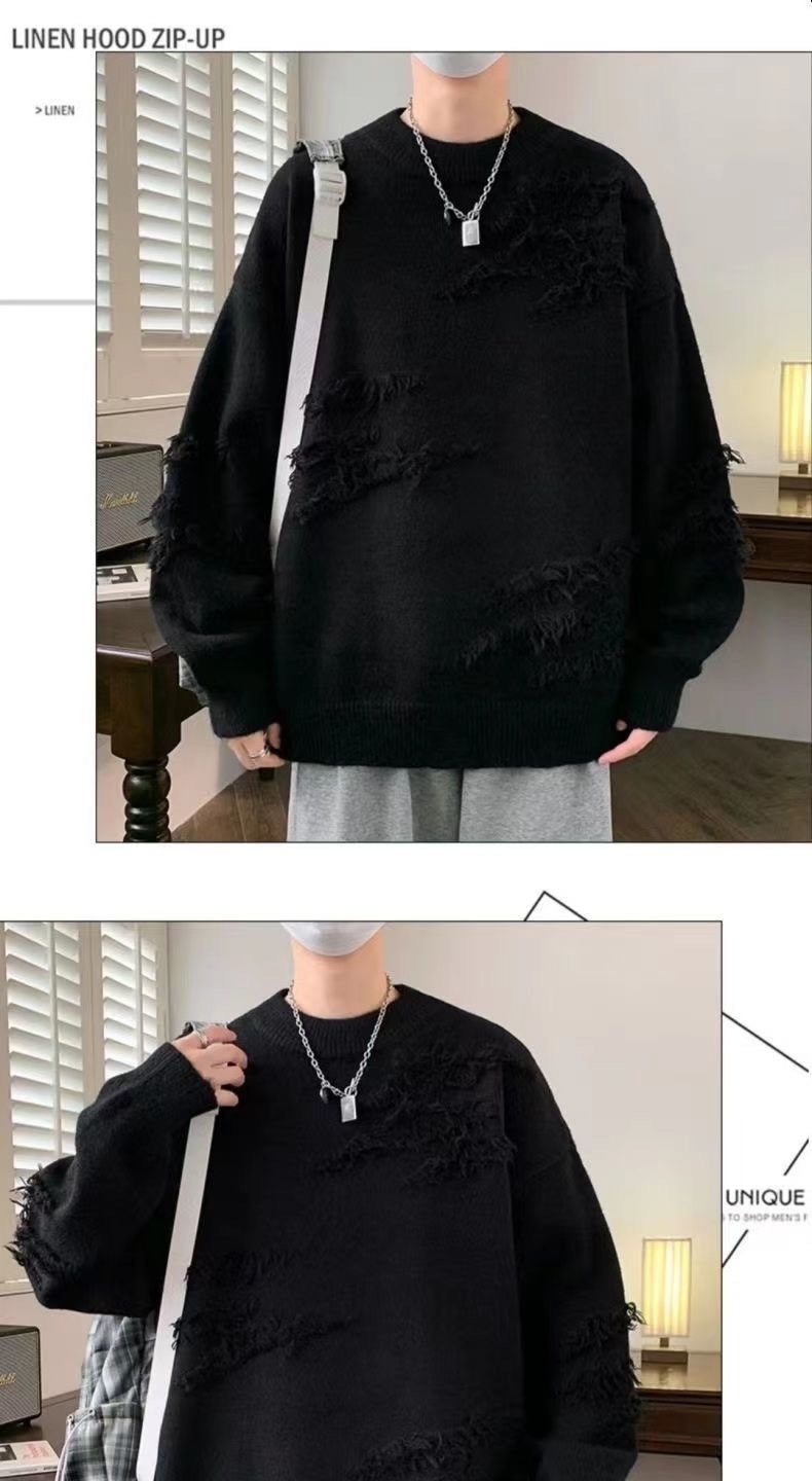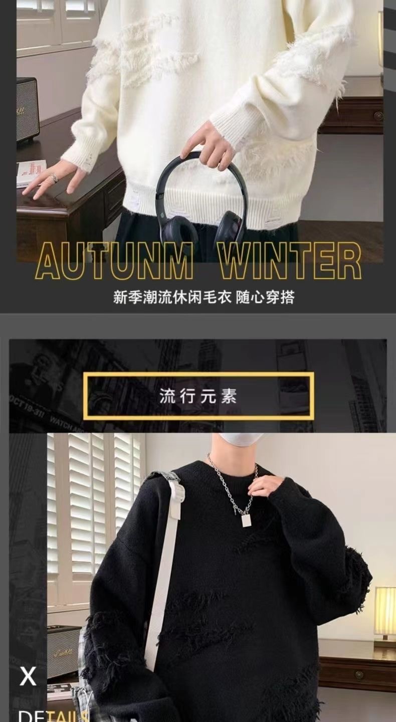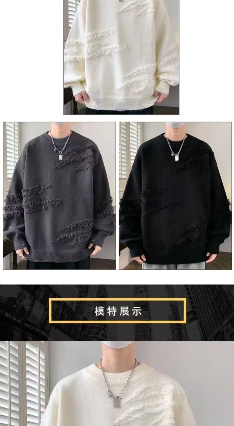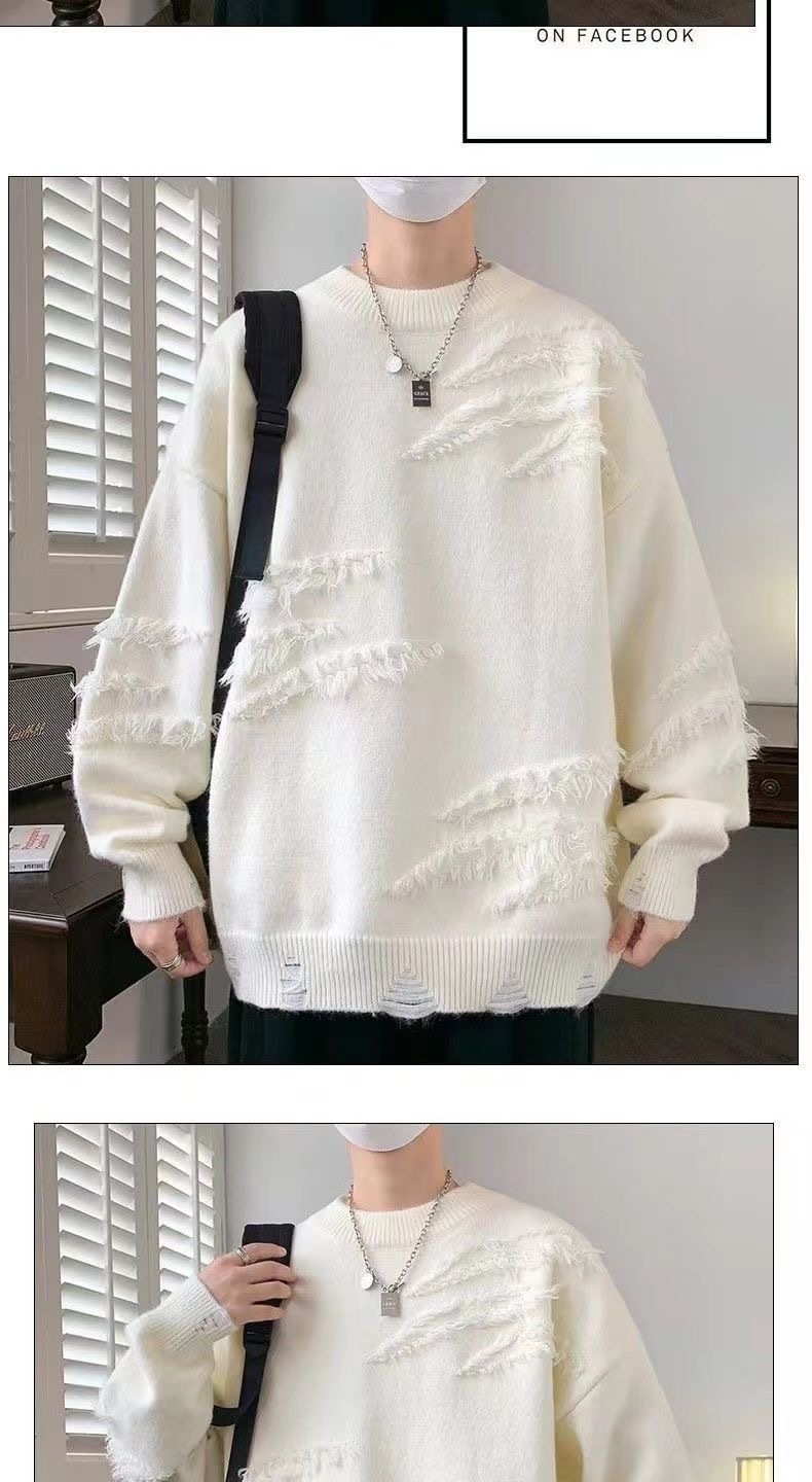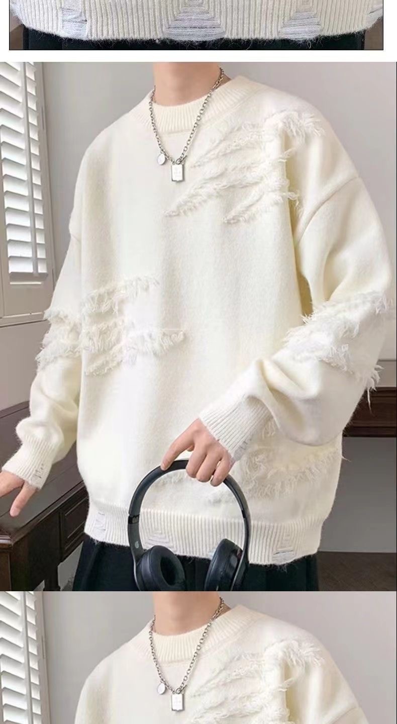 독특한 크루넥 스웨터 남자 가을 겨울 2023 기모 두꺼운 니트 스웨터 남자 레트로 게으른 스웨터 재킷스토어 가기