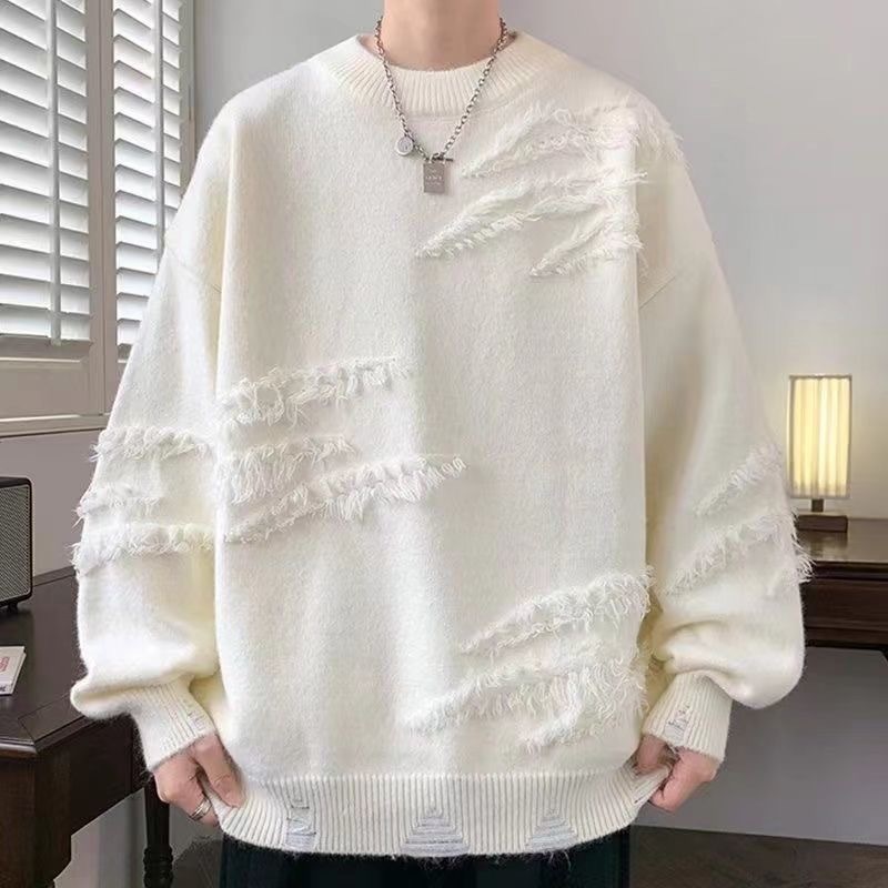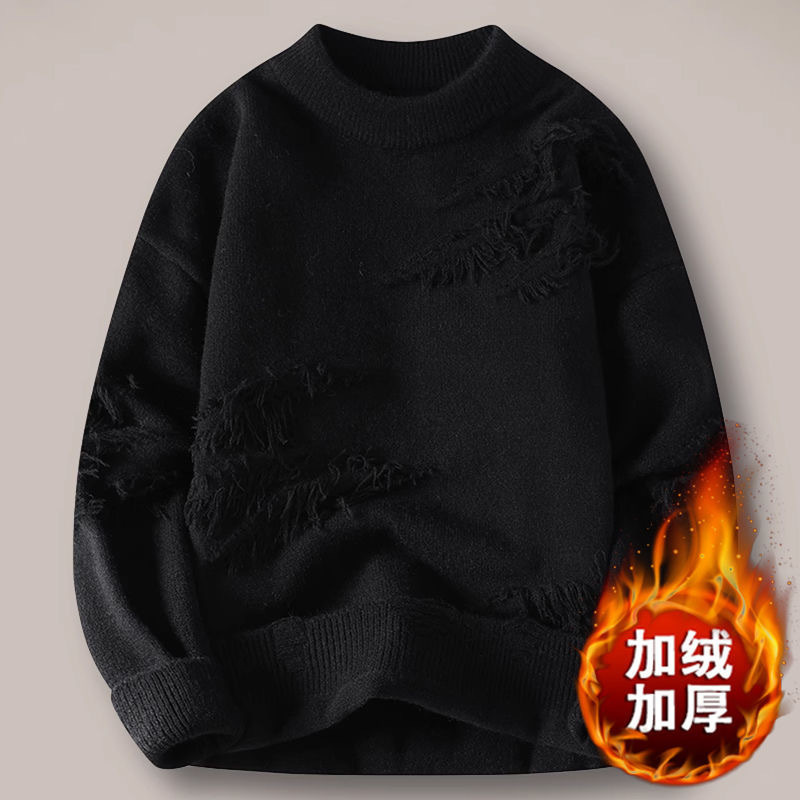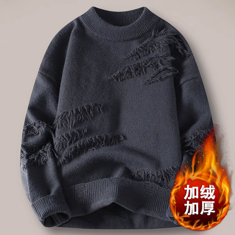 독특한 크루넥 스웨터 남자 가을 겨울 2023 기모 두꺼운 니트 스웨터 남자 레트로 게으른 스웨터 재킷