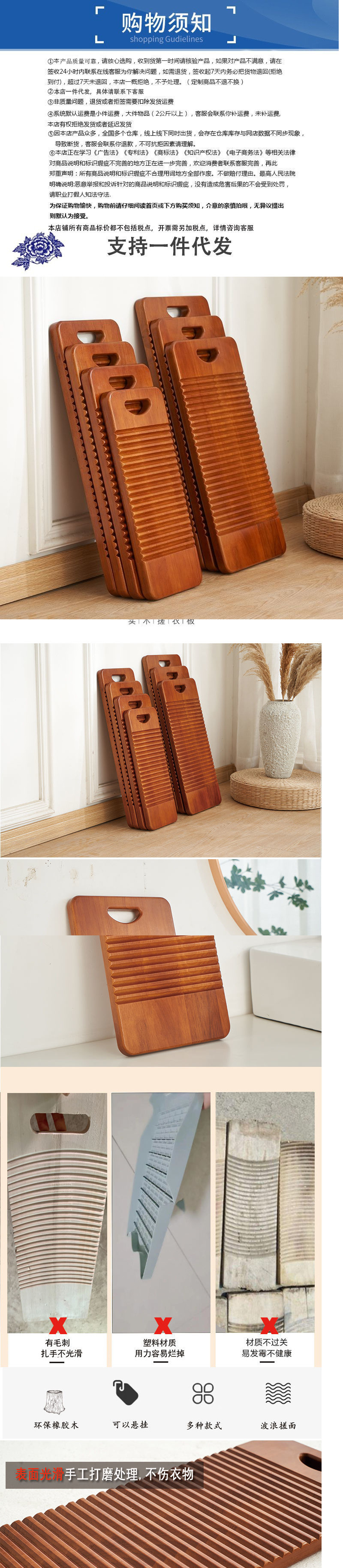 단단한 나무 씻기 판 가정용 두꺼운 대형 나무 곰팡이가없는 구식 기숙사 세탁판 곰팡이 방지 무릎을 꿇는 유물