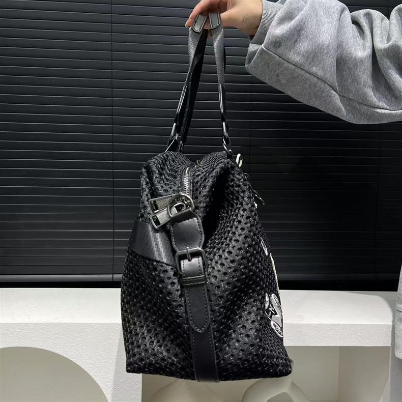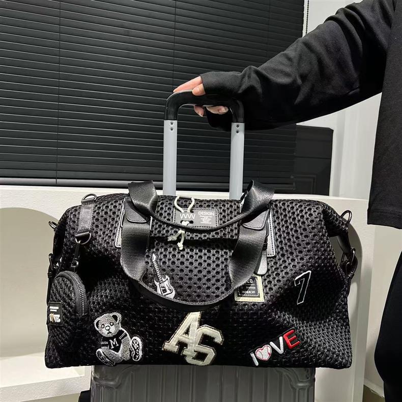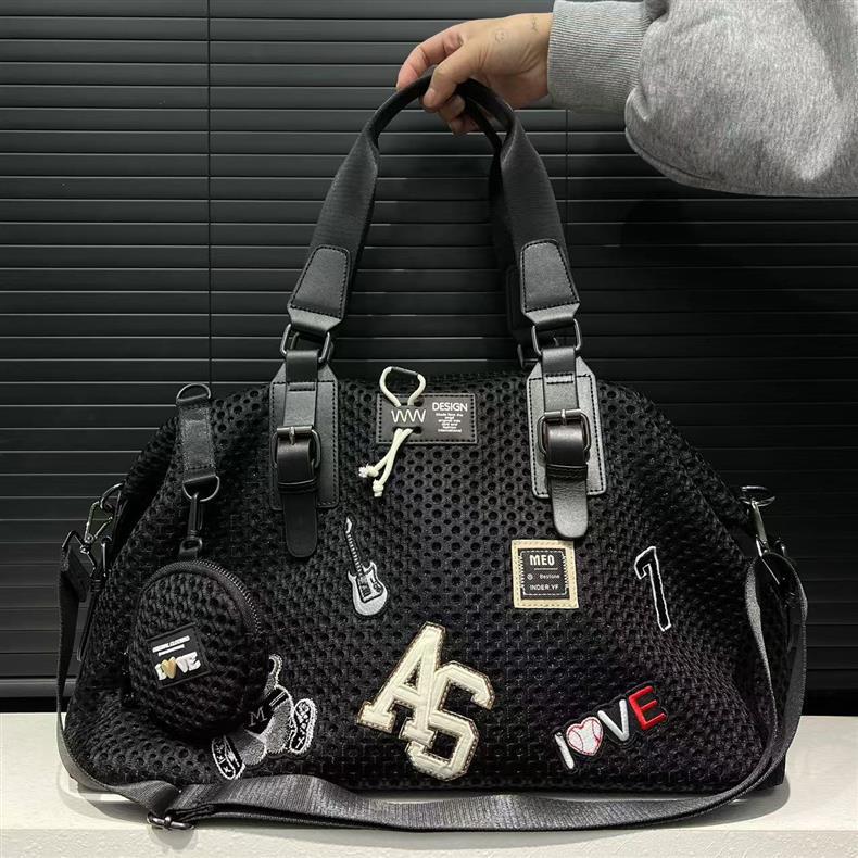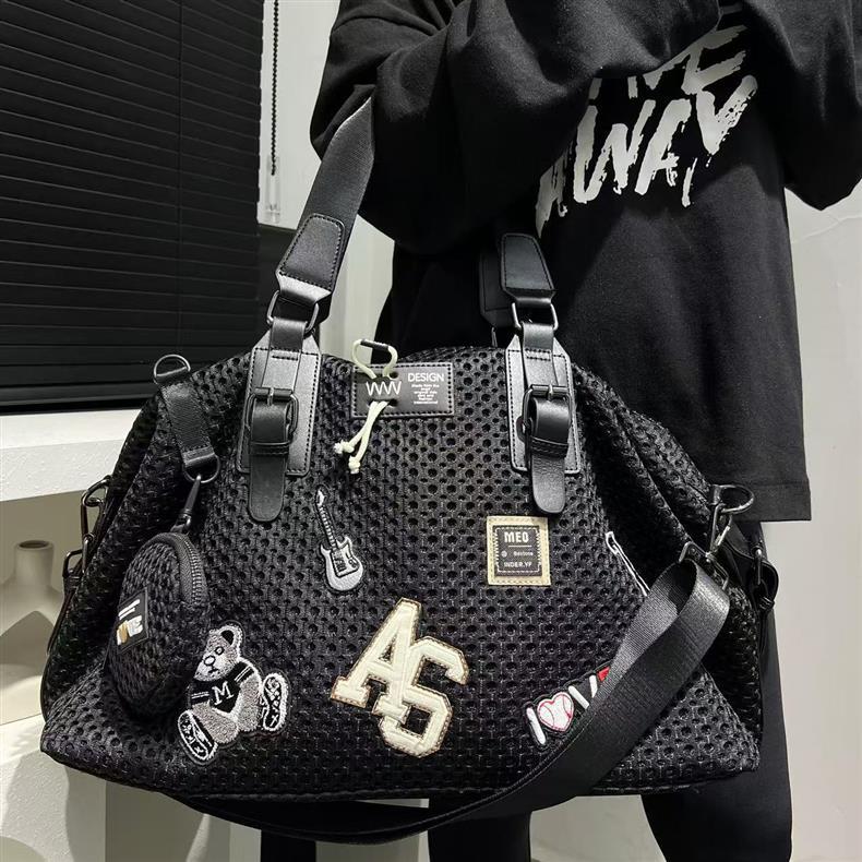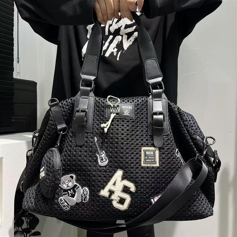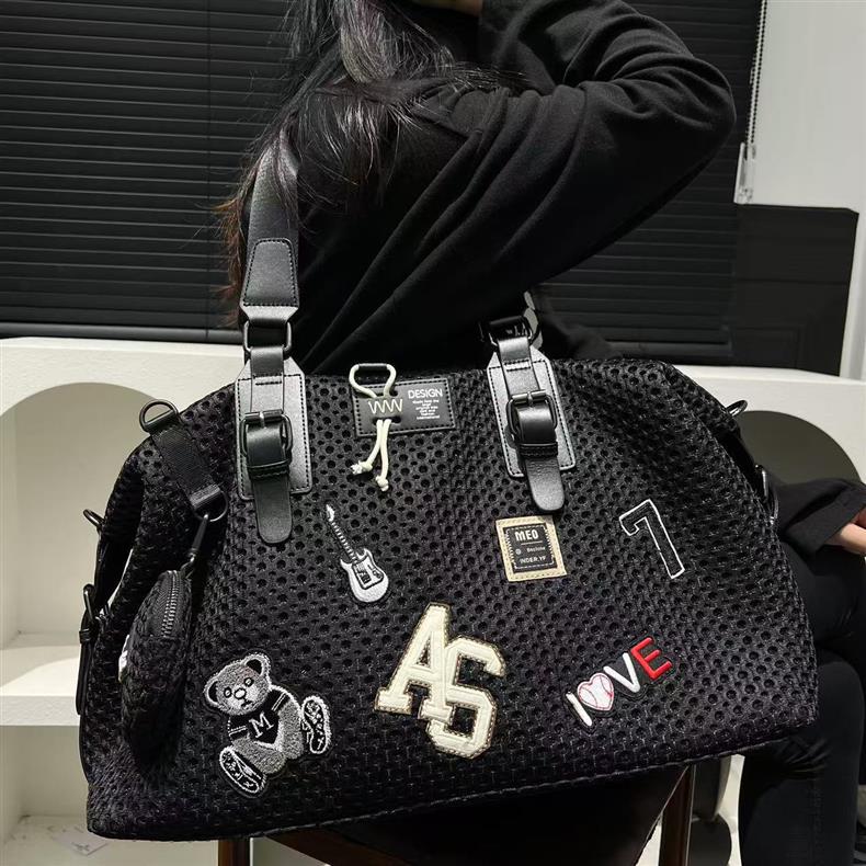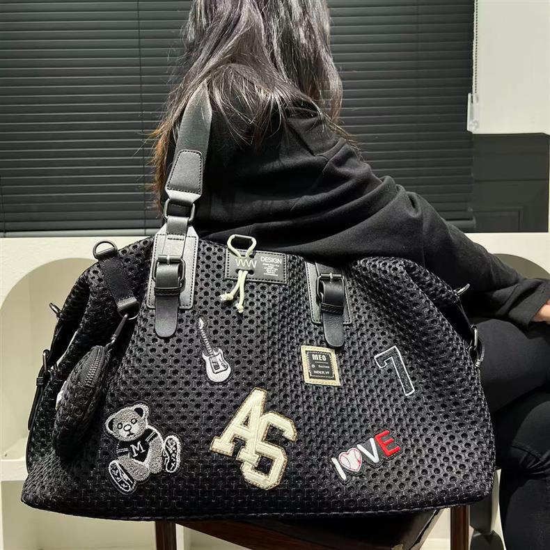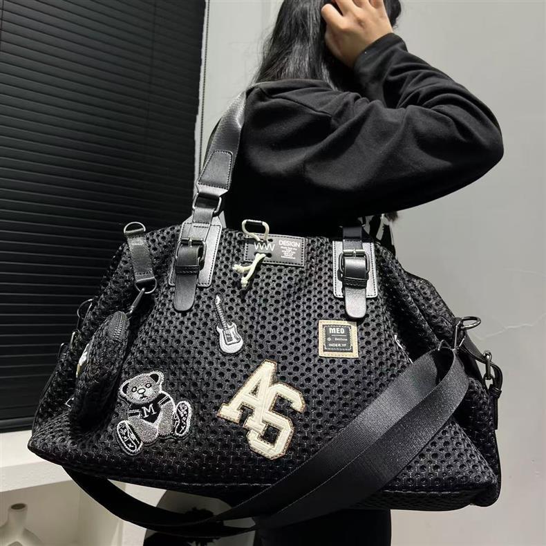 여성을위한 국경 TEMU 패션 메쉬 천 나일론 토트 백 대용량 캐주얼 여행 핸드백