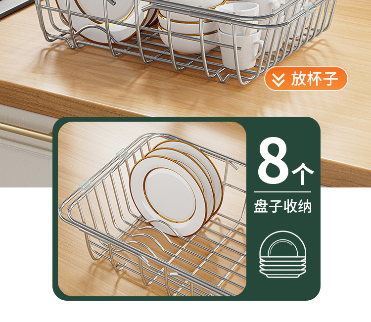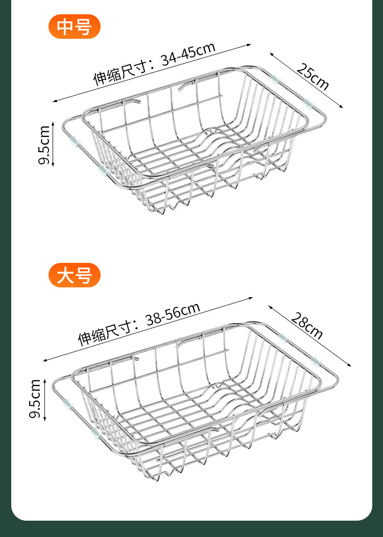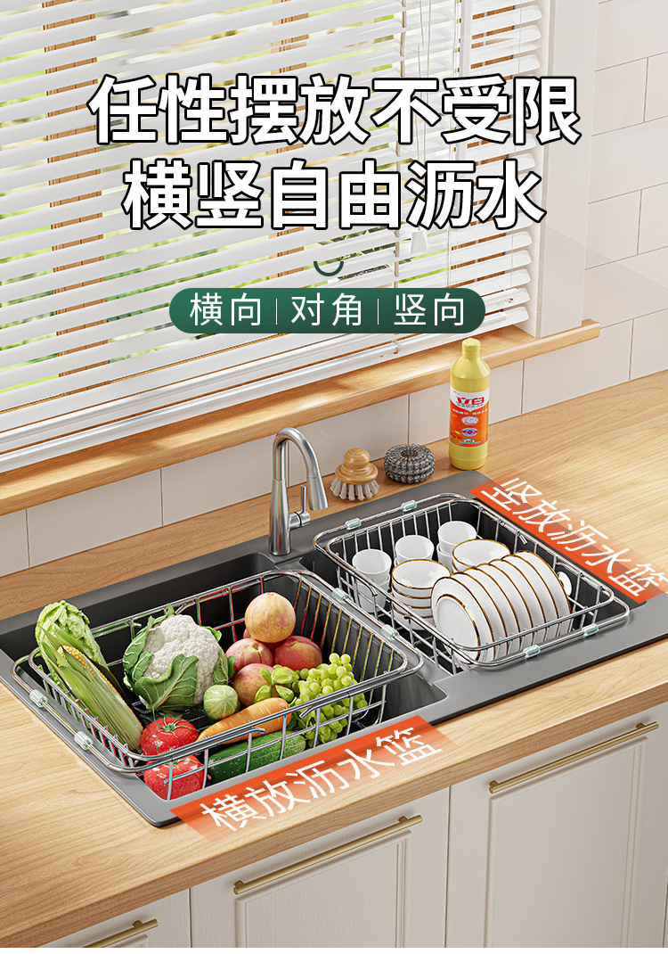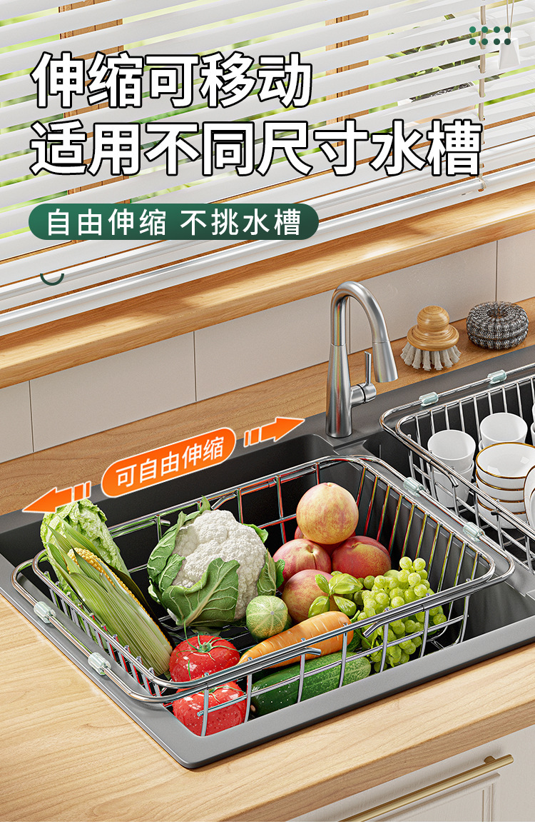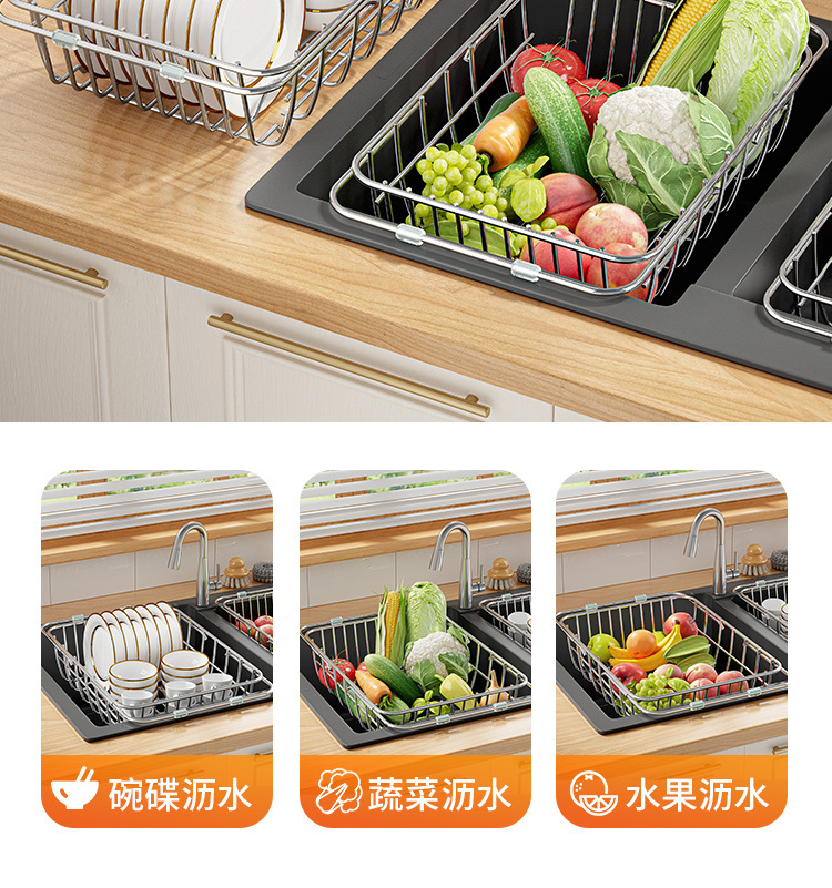 싱크대 배수 바구니 스테인리스 식기 세척대 야채 세척대 확장형 접시 보관대 용품 확장형 보관