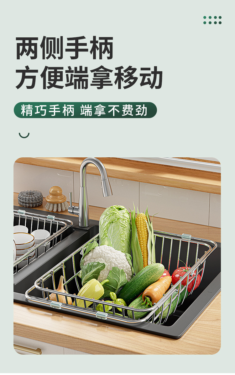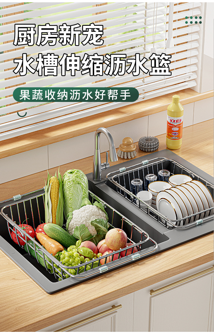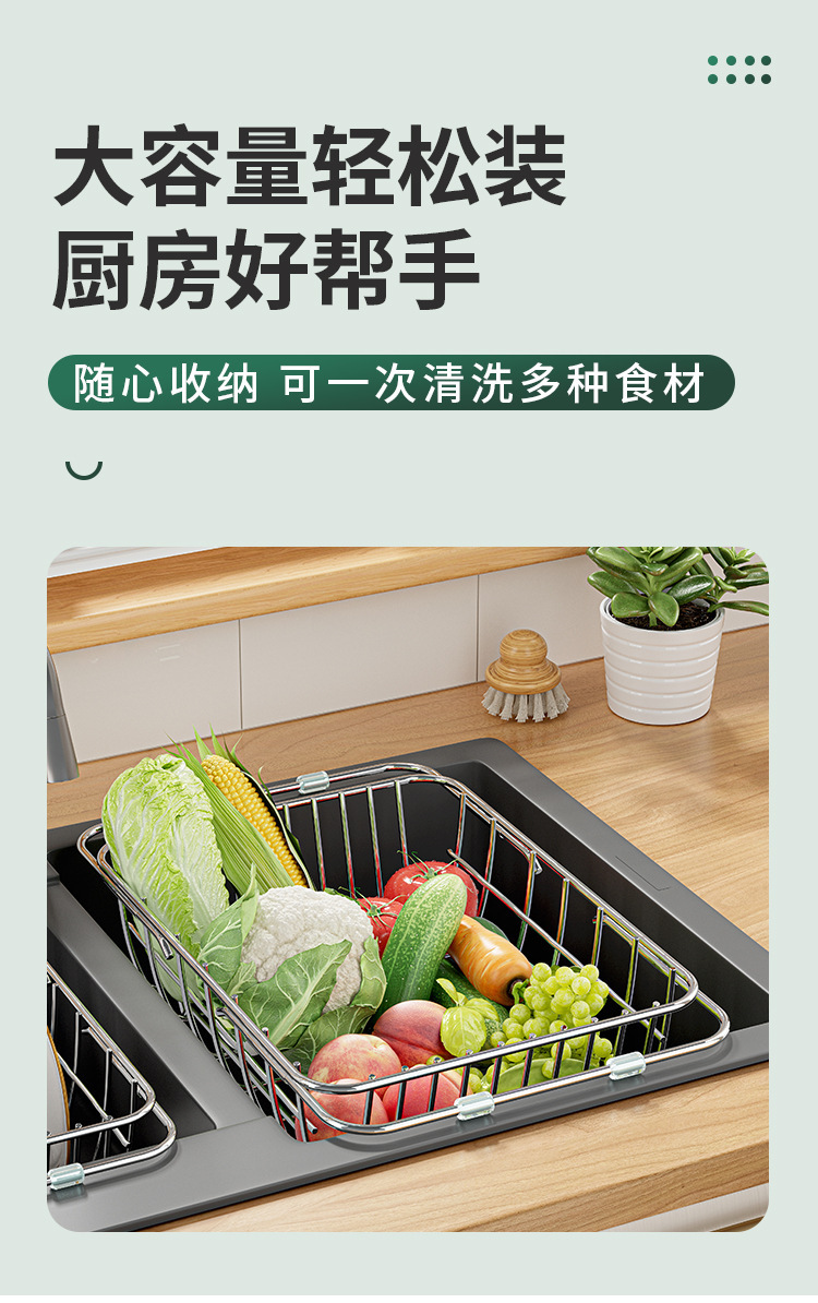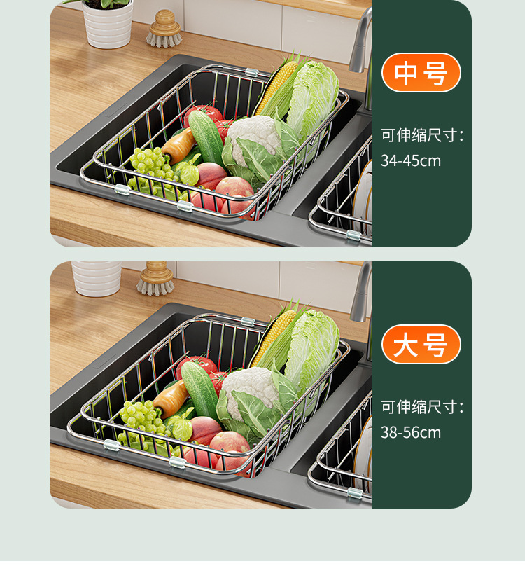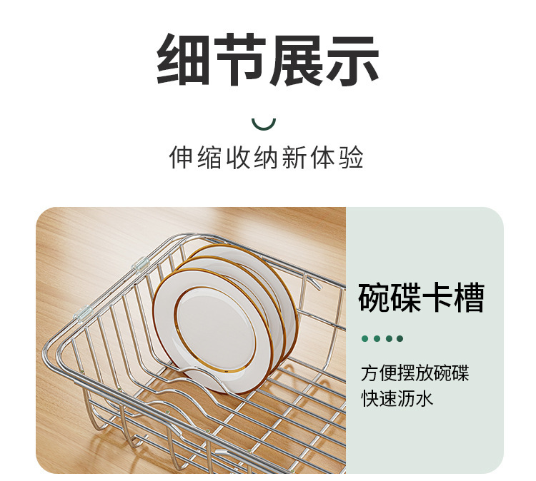 싱크대 배수 바구니 스테인리스 식기 세척대 야채 세척대 확장형 접시 보관대 용품 확장형 보관