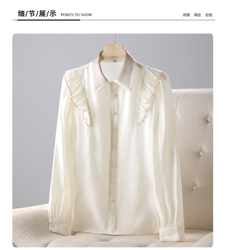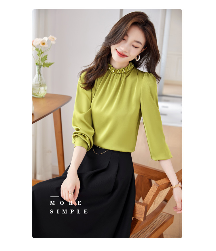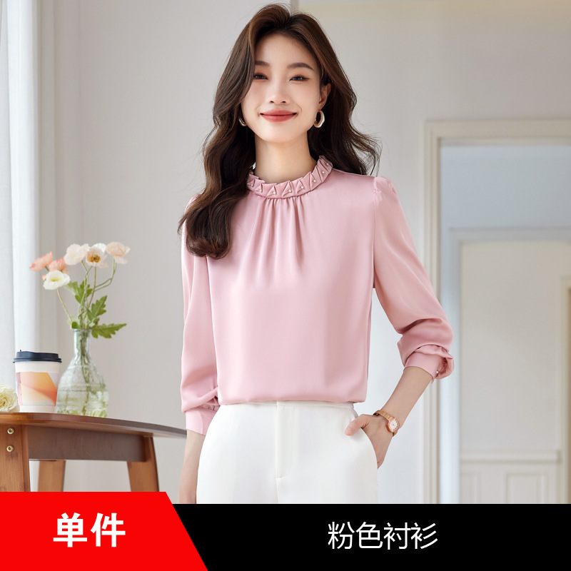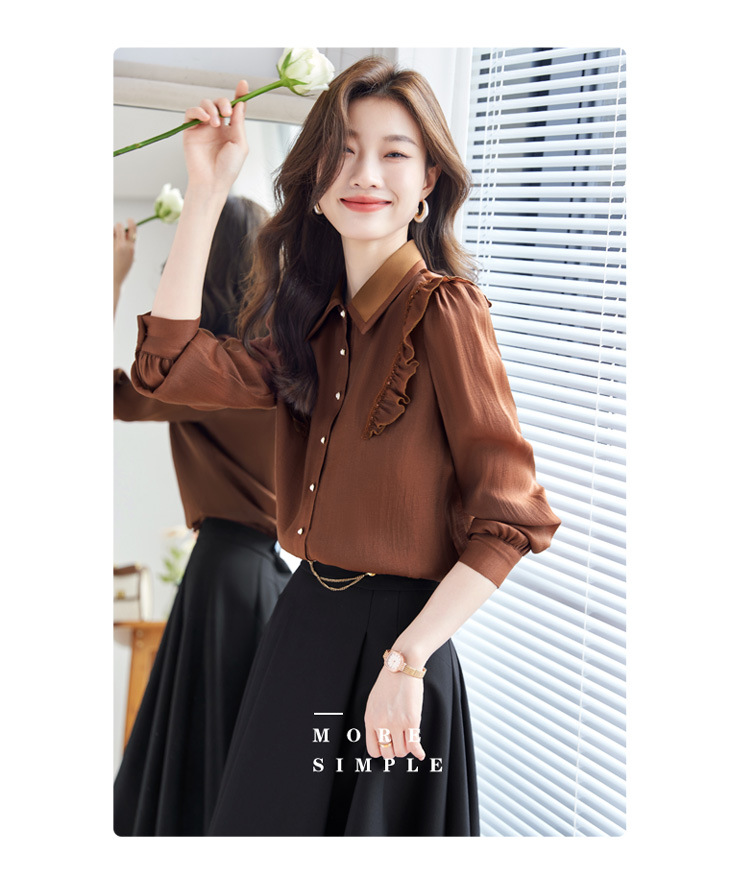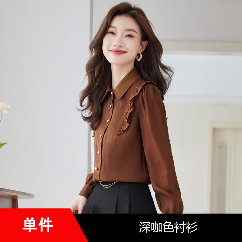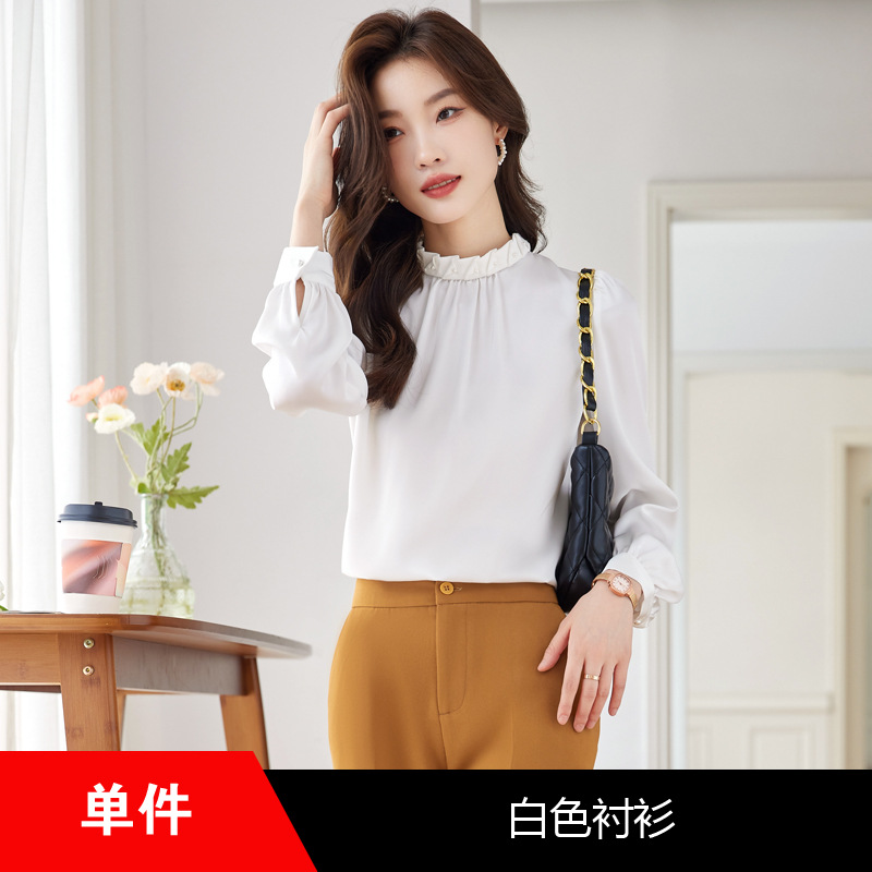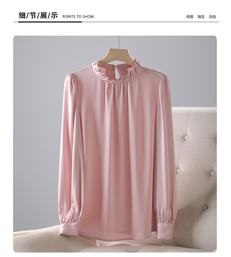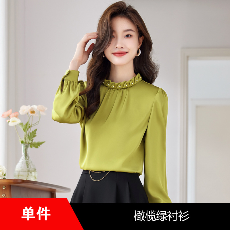 아세트산 새틴 셔츠 여성용 긴 소매 봄과 가을 새로운 패션 서양식 여성 전문 셔츠 프렌치 칼라 쉬폰 셔츠스토어 가기