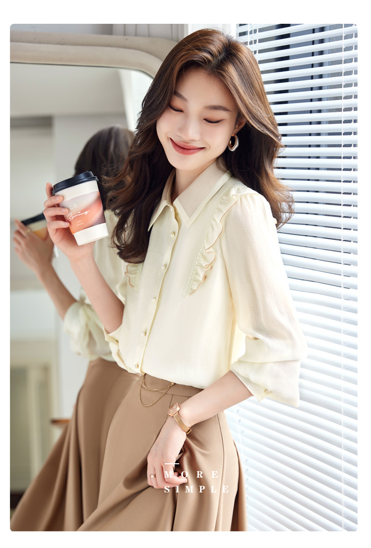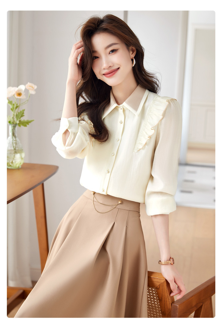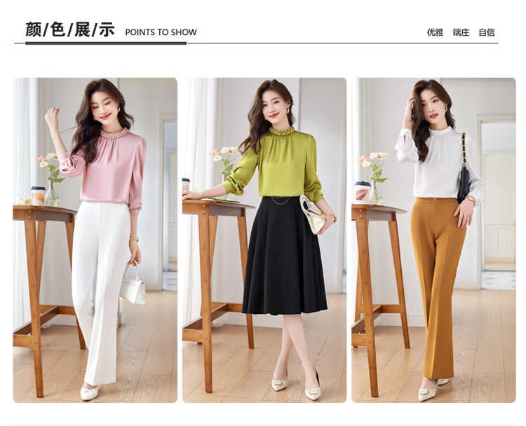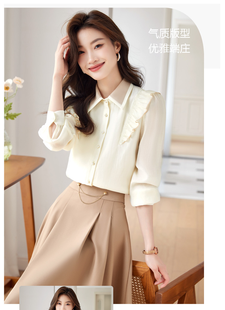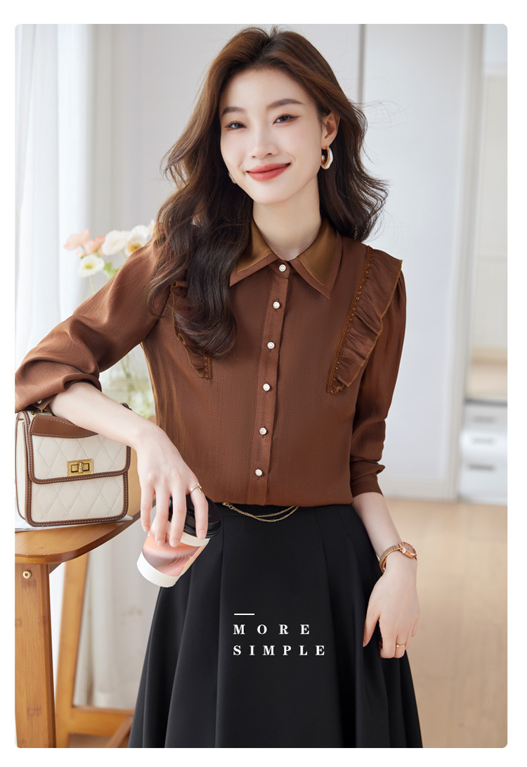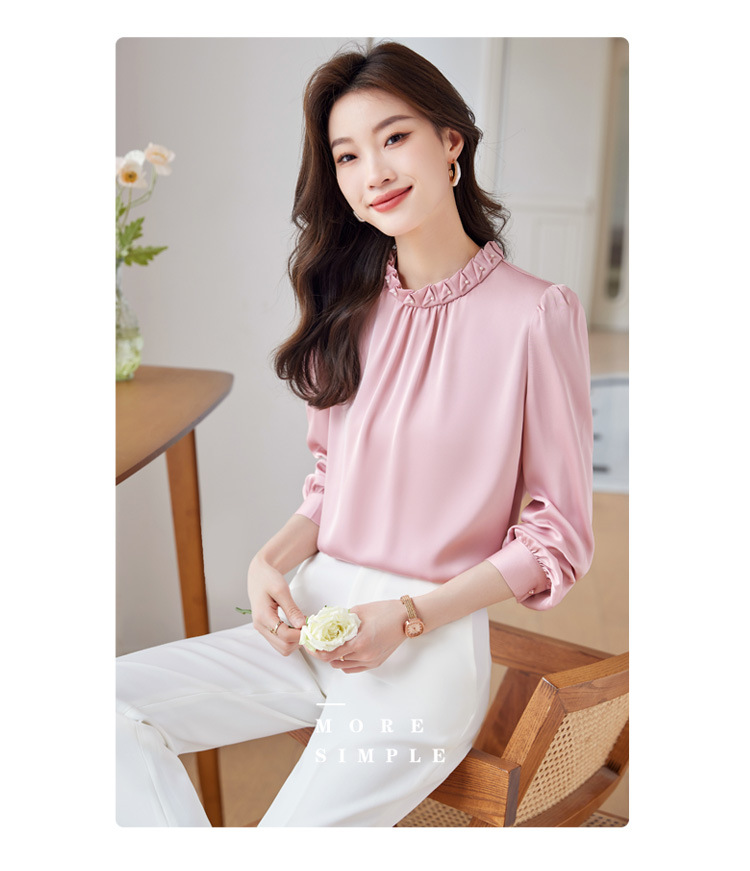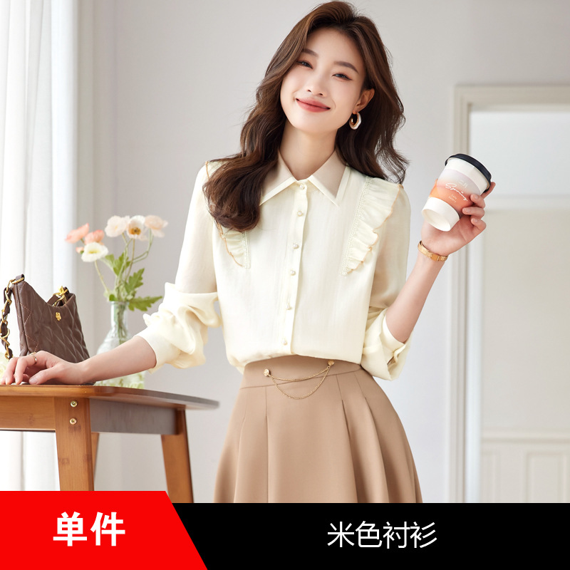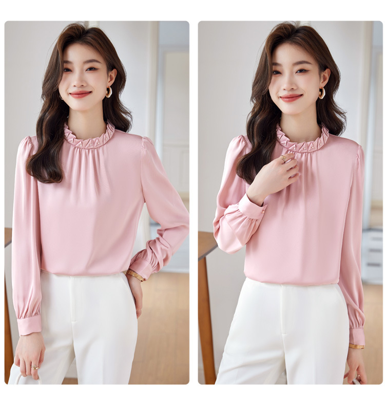 아세트산 새틴 셔츠 여성용 긴 소매 봄과 가을 새로운 패션 서양식 여성 전문 셔츠 프렌치 칼라 쉬폰 셔츠스토어 가기