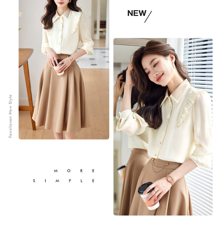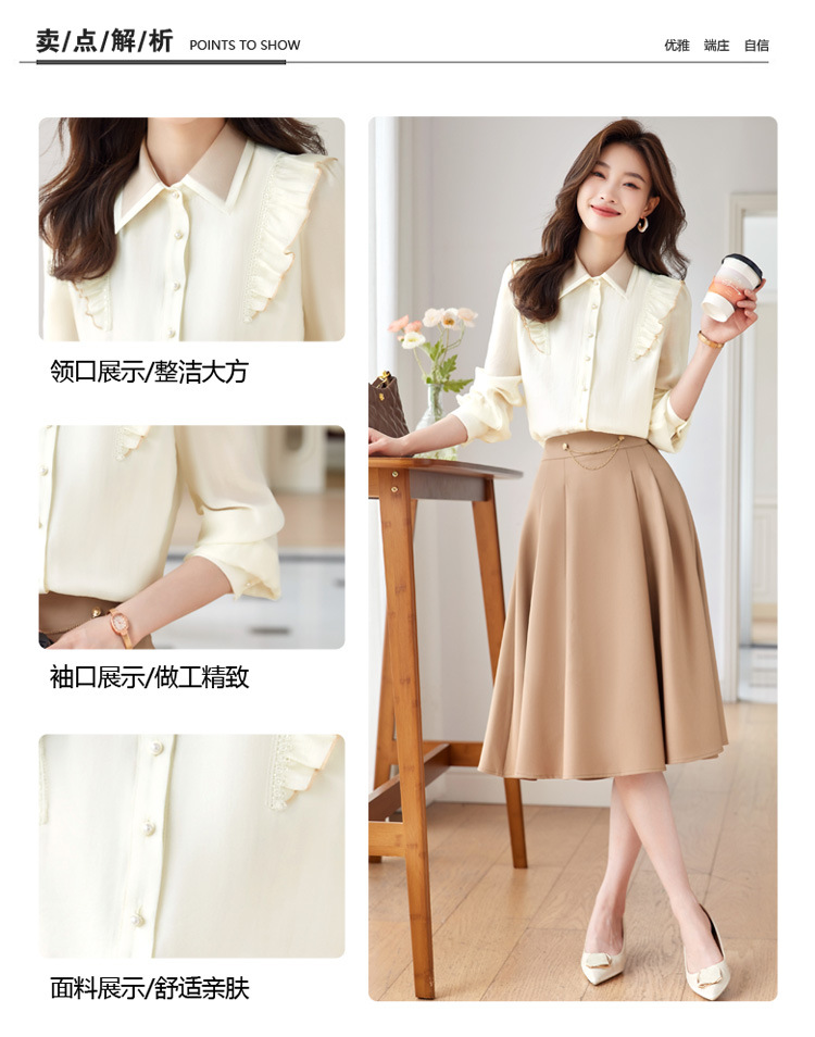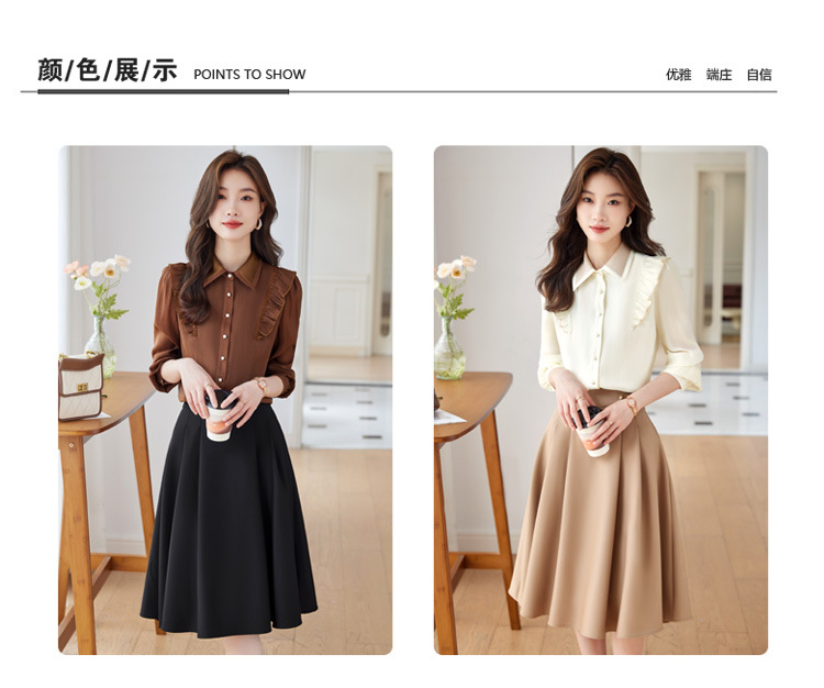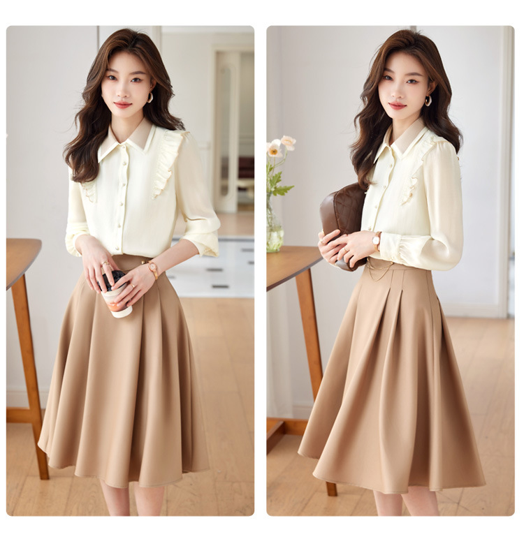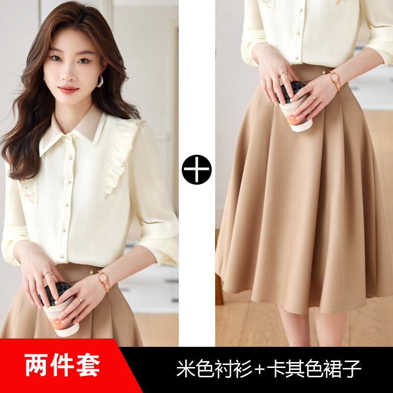 • 베이지 6758 셔츠 + 1098 카키 스커트